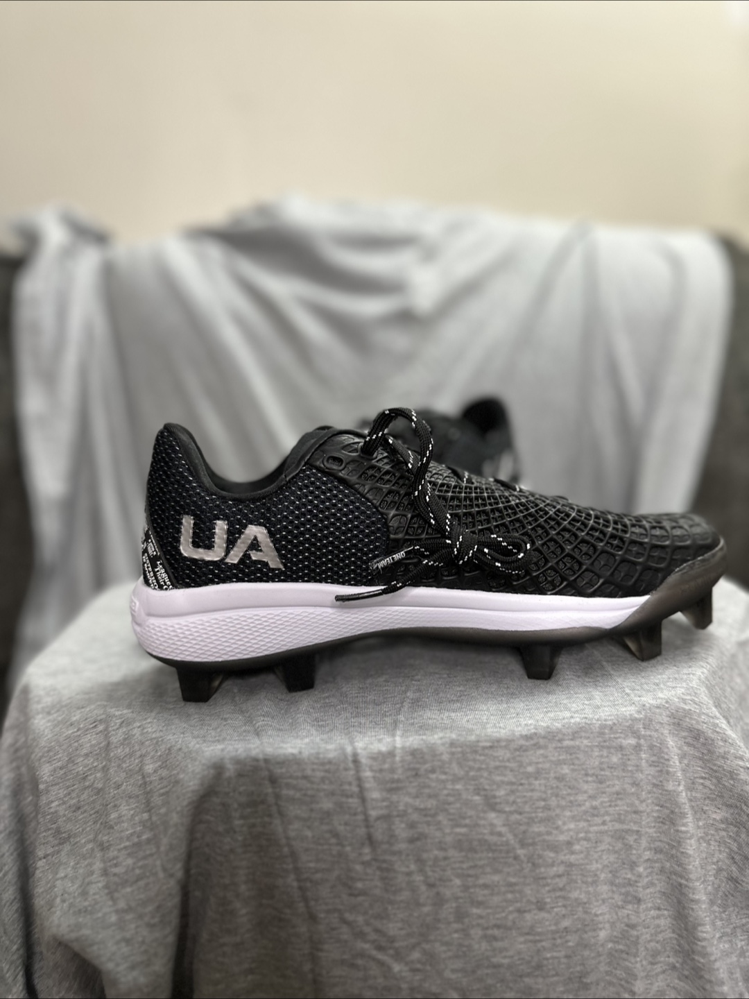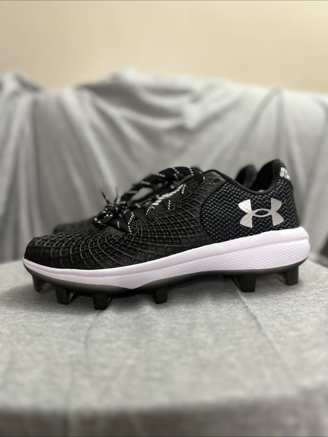 Selling a pair of Under Armour football cleats in size 9. They are black and white. These cleats have Microtip technology for enhanced traction on the field. They are in good condition and ready for a new season!