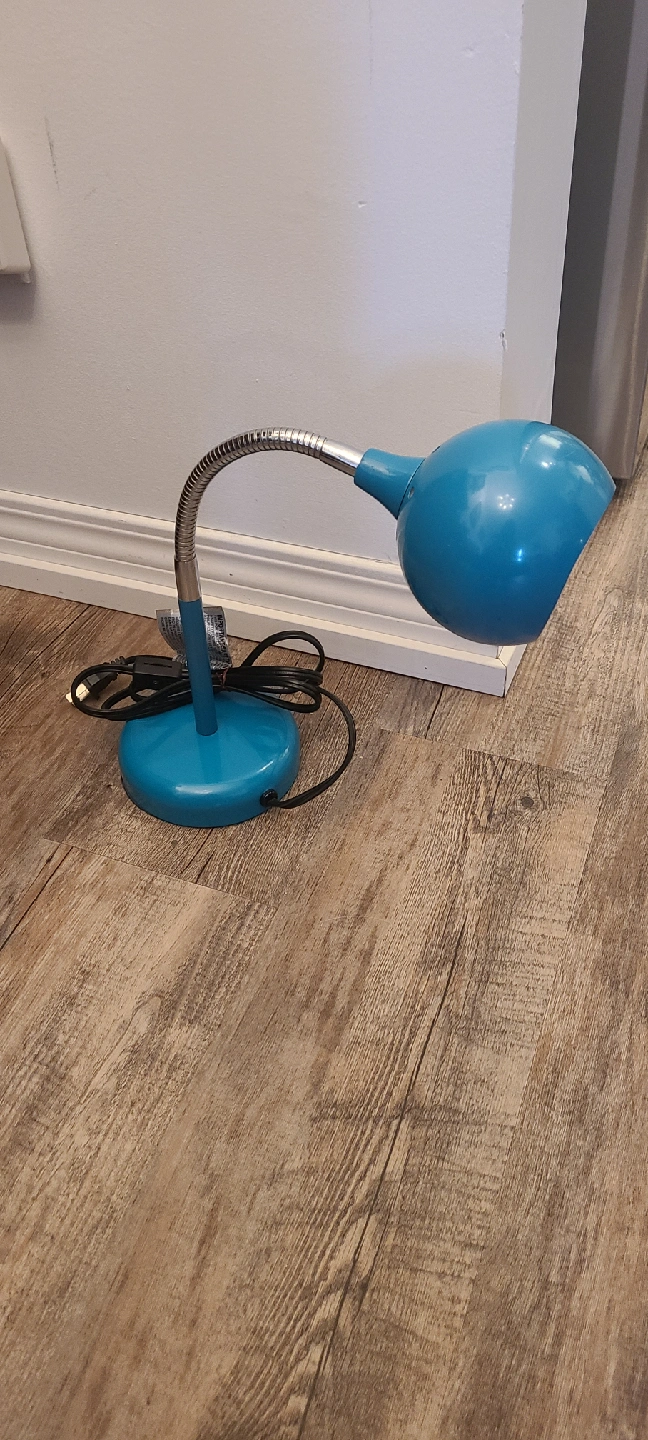 Here's a cute little blue gooseneck desk lamp! It's in great shape and ready to light up your workspace or bedside table. The flexible neck makes it easy to adjust the light exactly where you need it. Non smoking home. Cash only absolutely no etransfer. Pickup in Dalhousie.