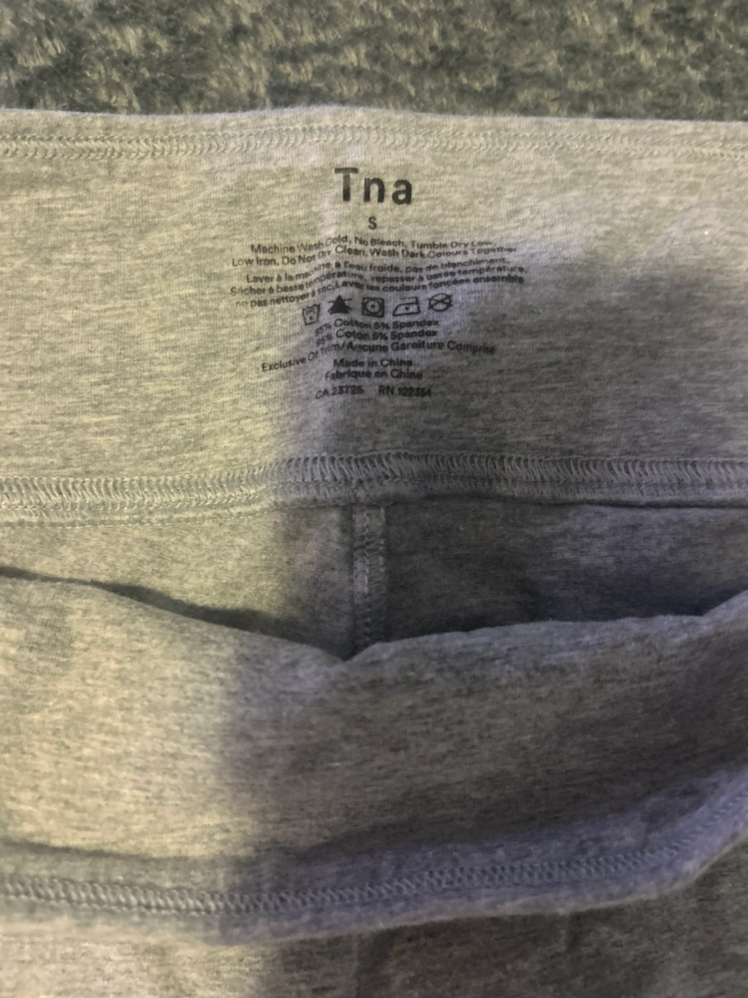 20Selling a pair of Tna leggings in a lovely grey colour. They are size small and made of 94% cotton and 6% spandex. Perfect for workouts or just lounging around!