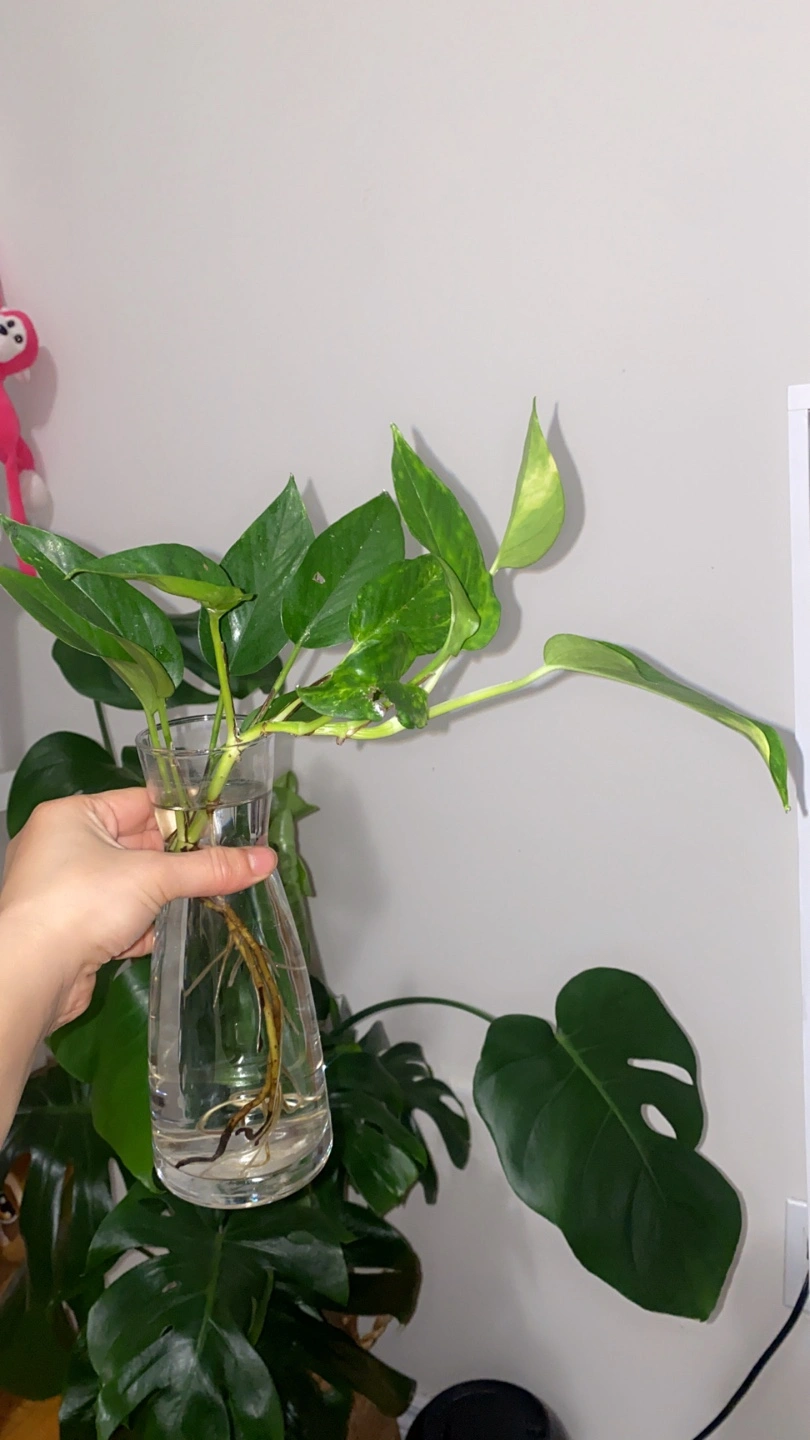 I'm selling a pothos plant ๐ชด with pot It's currently rooting in water and ready to be planted or you can keep like this also.It would be a great addition to your home