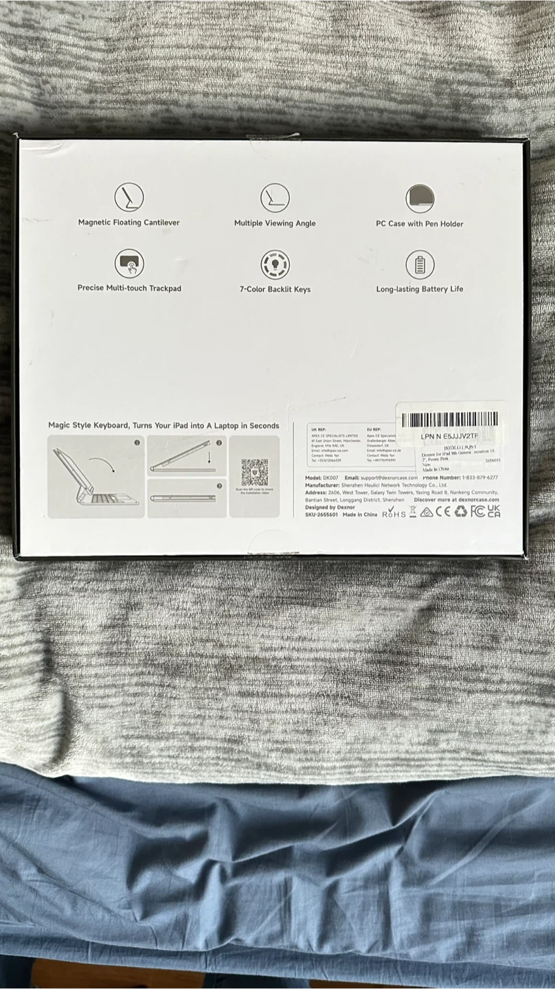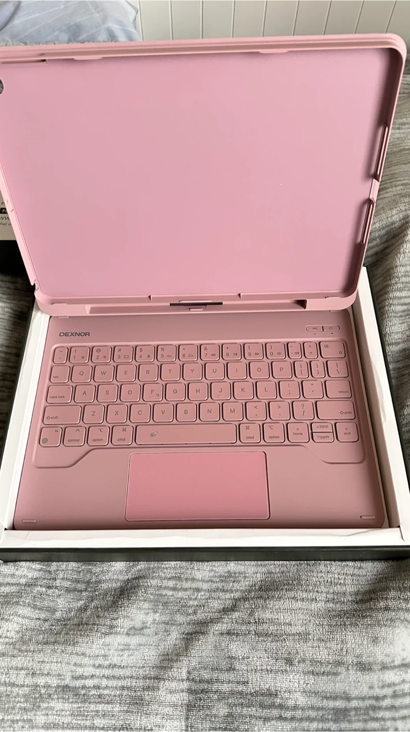 Selling a Dexnor keyboard case for an iPad 9th generation! It's in pink and comes with the box. Features include: - Magnetic Floating Cantilever - Multiple Viewing Angle - PC Case with Pen Holder - Precise Multi-touch Trackpad - 7-Color Backlit Keys - Long-lasting Battery Life New (open box)