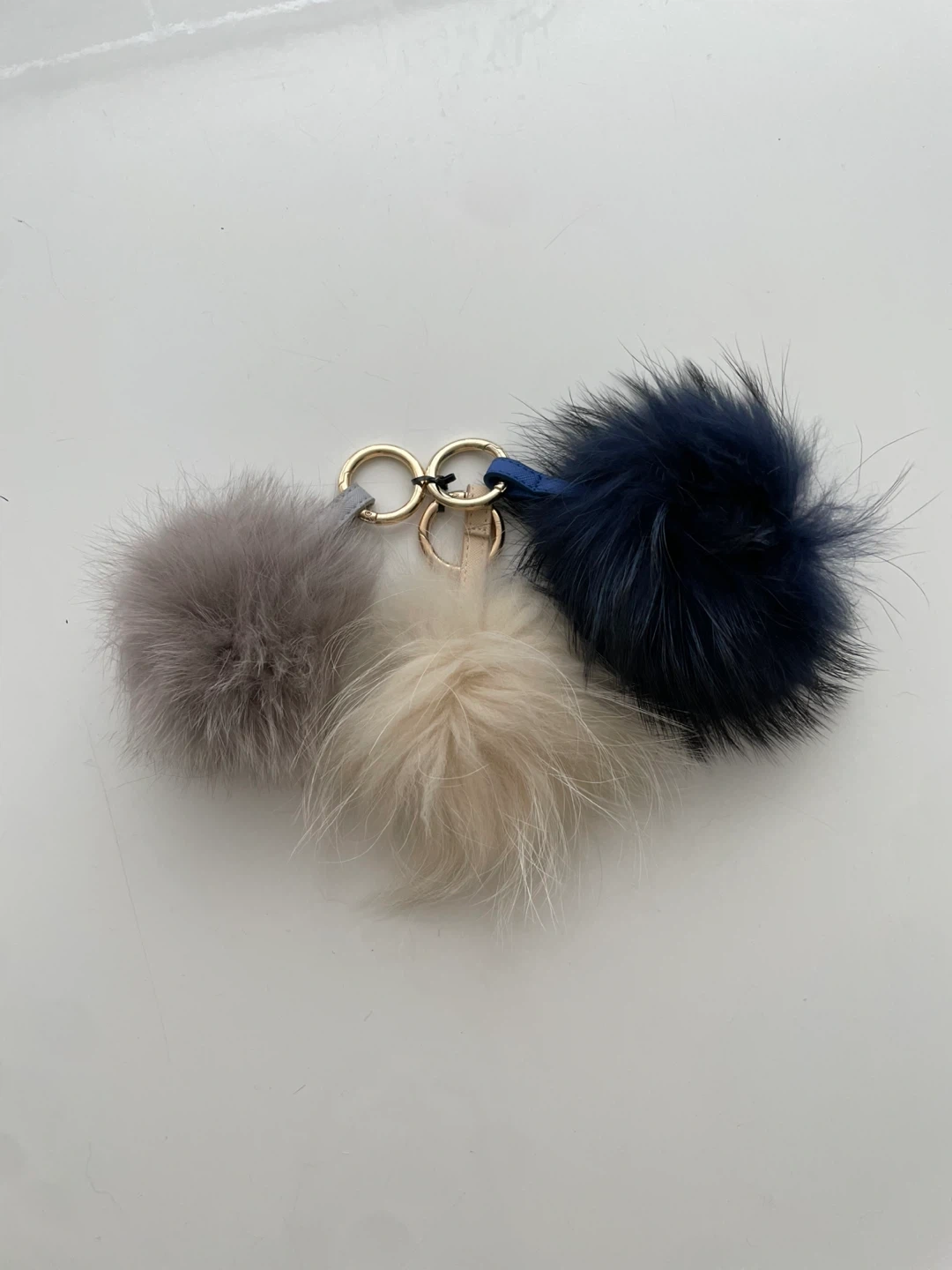 Selling a set of three cute fluffy pom pom keychains! They come in grey, cream, and navy blue. Perfect for adding a little flair to your keys or bag