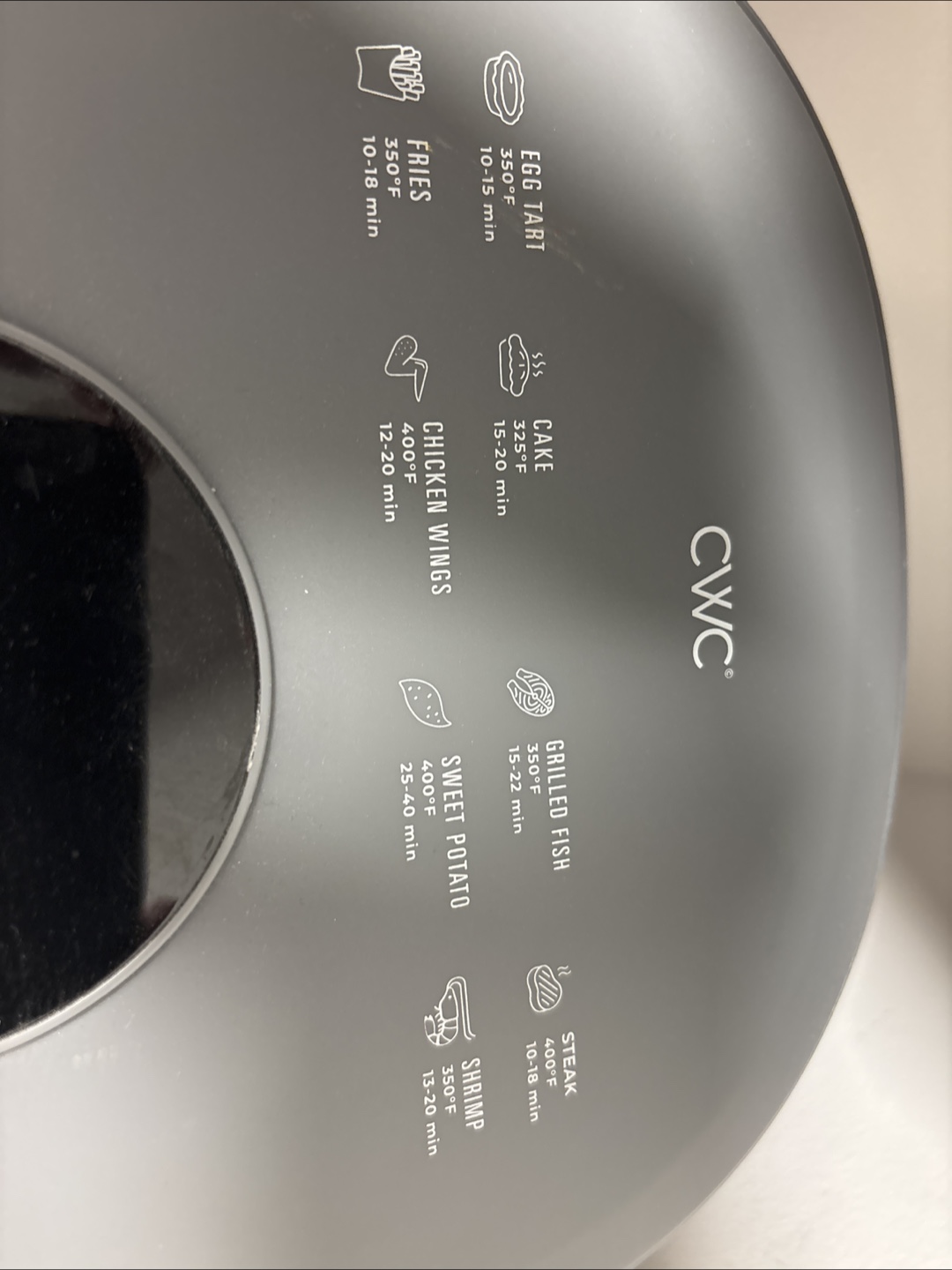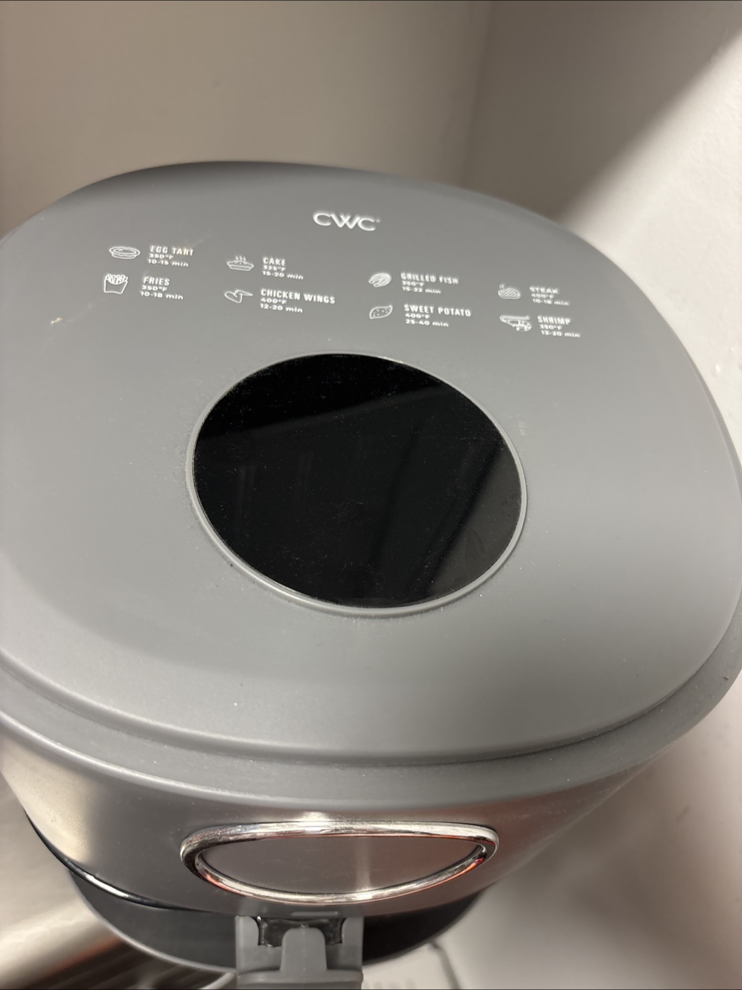 Gray CWC air fryer. Great condition, like new and ready to help you make some tasty meals! It can cook a variety of foods like fries, egg tarts, chicken wings, cake, grilled fish, steak, shrimp, and sweet potato, etc.