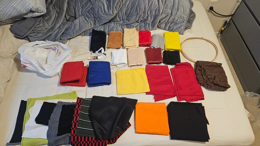 Assortment of different types of fabrics, including felt, cotton, and mink 160cm long each