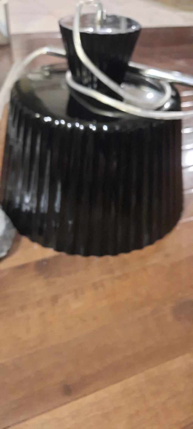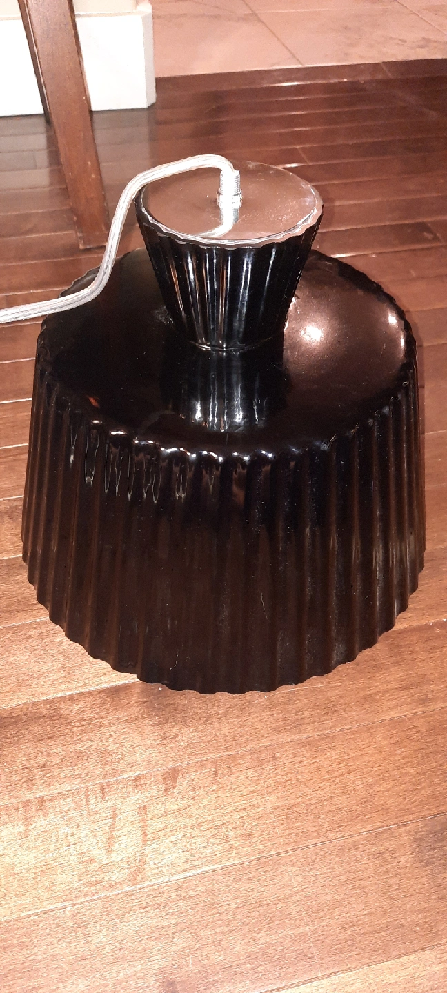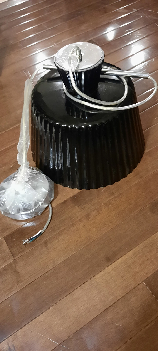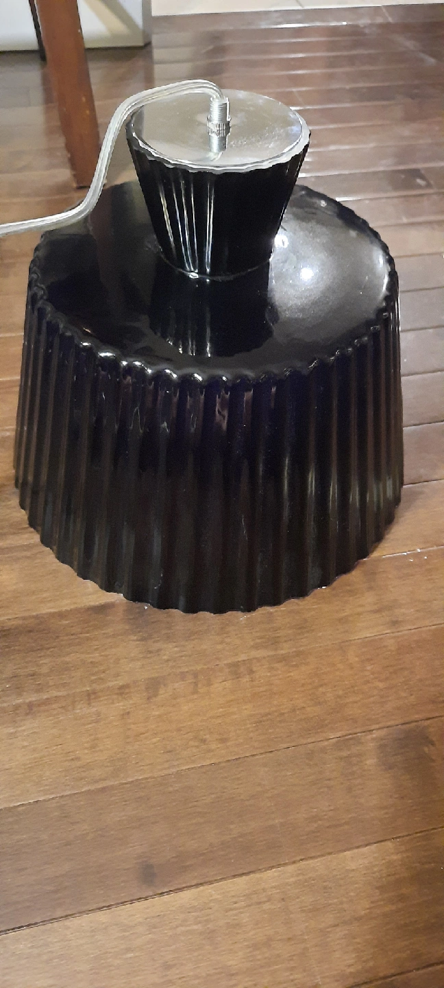Selling a black pendant light still on plastic!. It's in great shape and ready to brighten up your space! This awesome retro looking ceiling fixture is 10 inches high and 11.5 inches in diameter! Length of adjustable cord is 48 inches from fixture to base. pick up Beverly heights cash only please