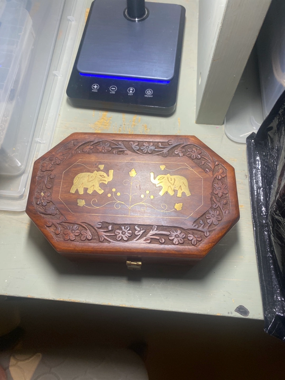 Wooden Jewelry Box with Elephant Design