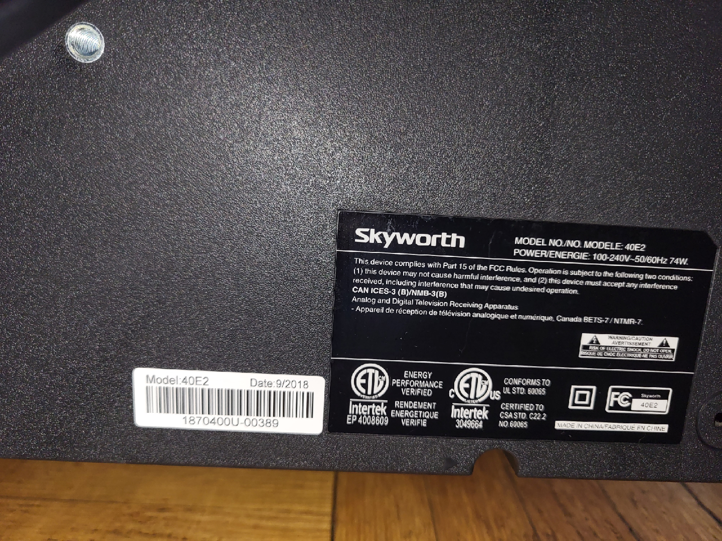 Selling our 40" Skyworth. Works great and needs a new home. Selling because of upgrade. Selling for $114. Comes with remote and battery. * Not a SmartTV.