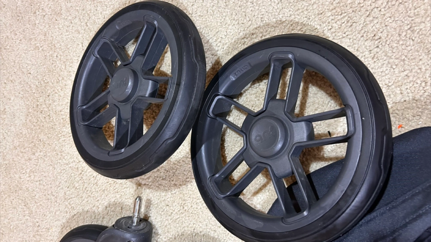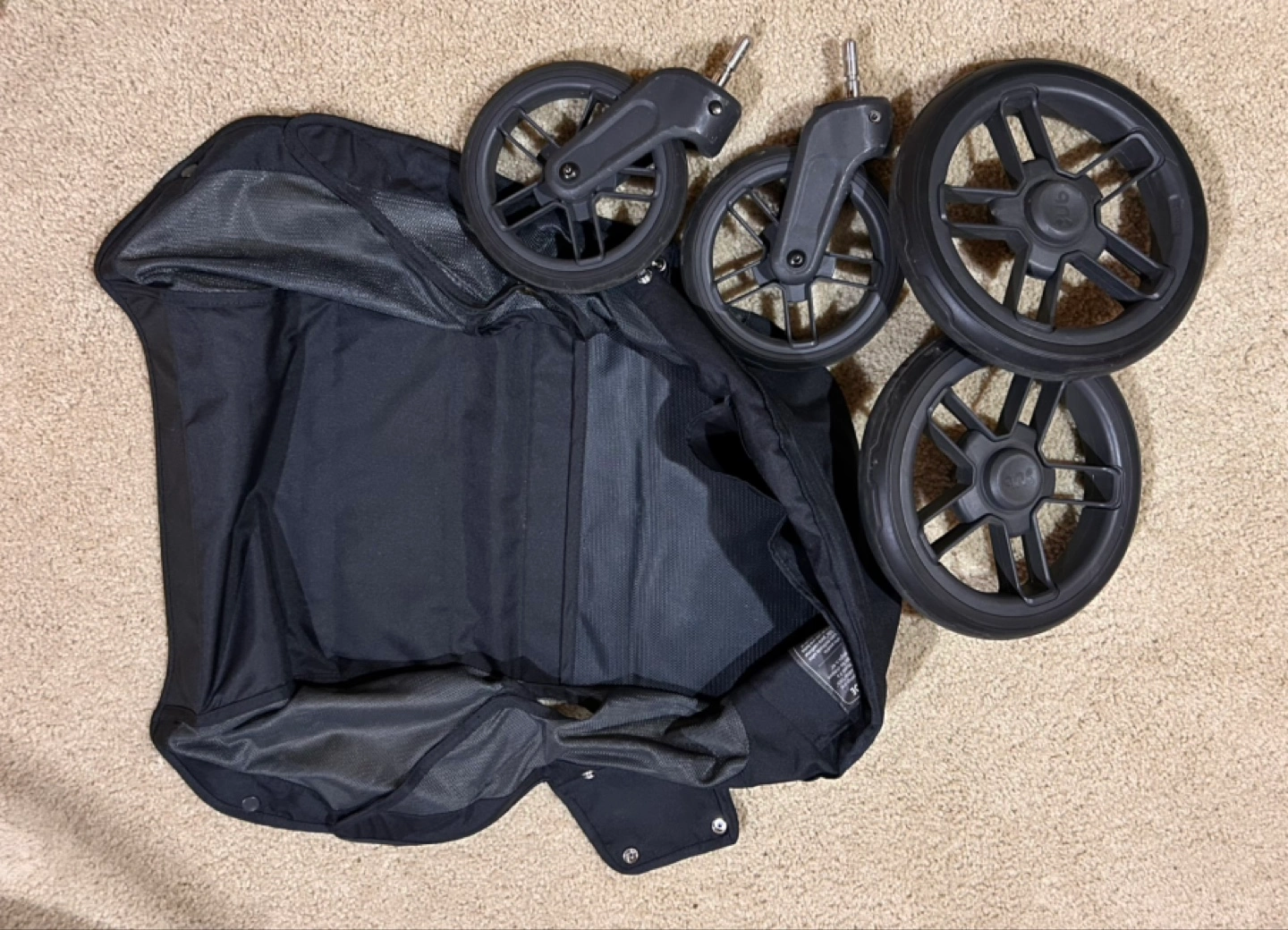 -Included a toddler seat, a bumper bar, frame, wheels and rain shield