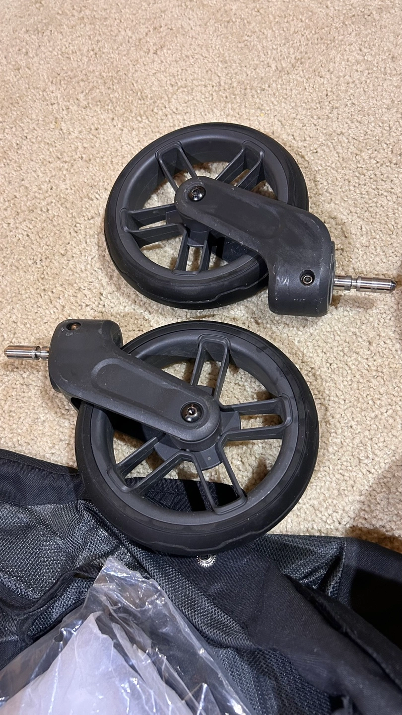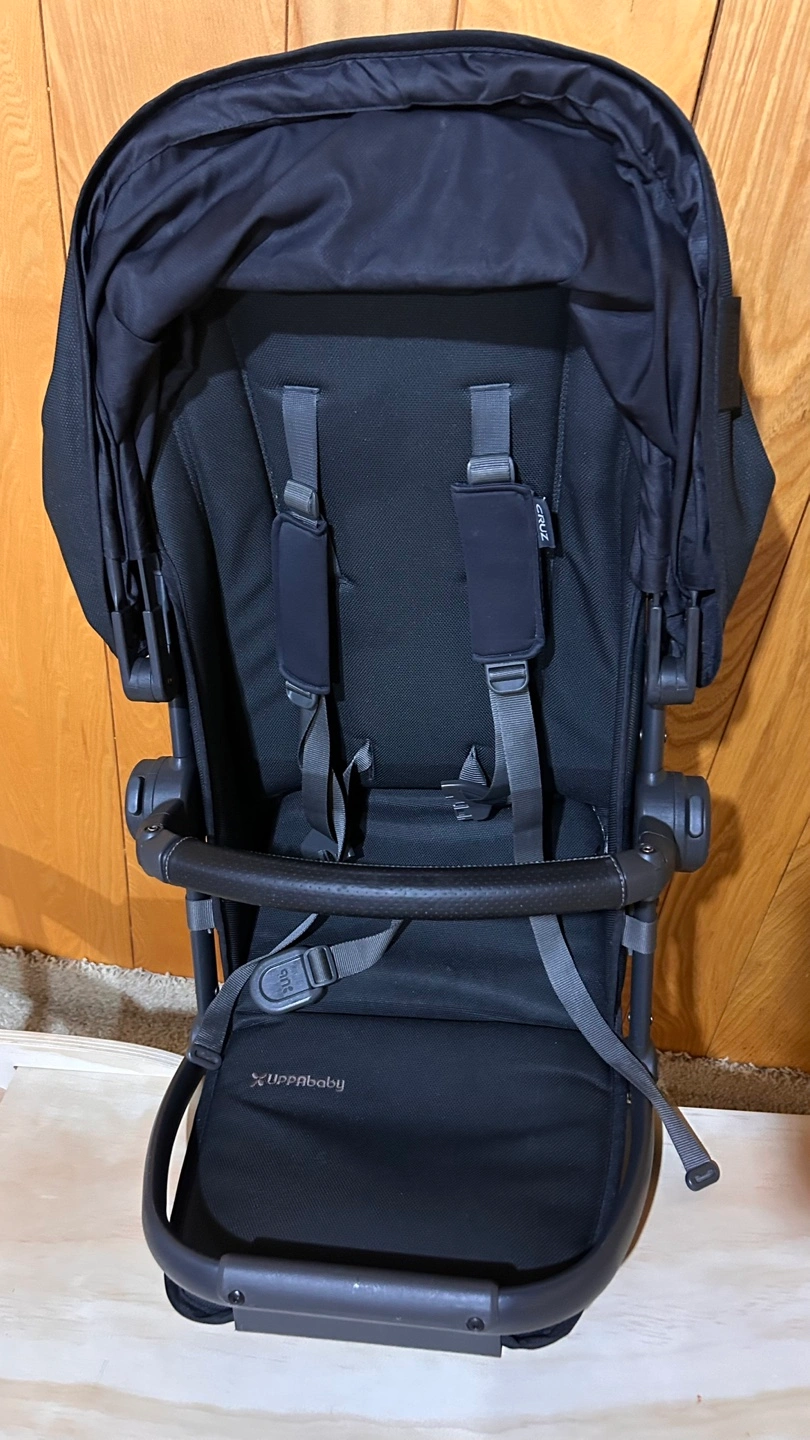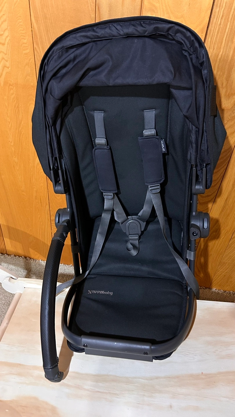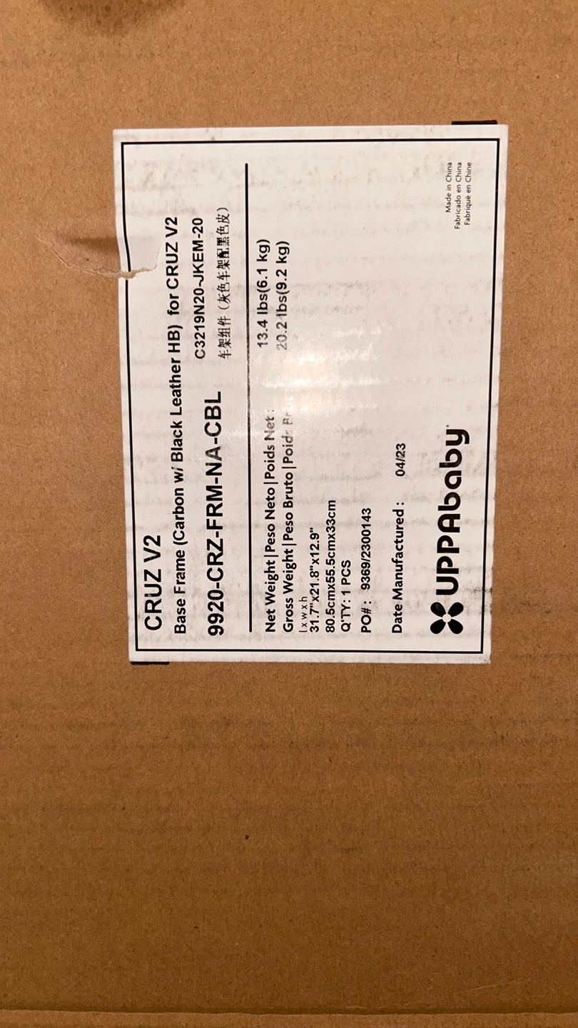 Selling new UPPAbaby Cruz V2 stroller. A new Cruz V2 Base Frame (Carbon w/ Black Leather HB) for CRUZ V2 and rain cover. Lightly used wheels, basket and toddler seat. Some wear and tear; I can send more pictures upon inquiry.