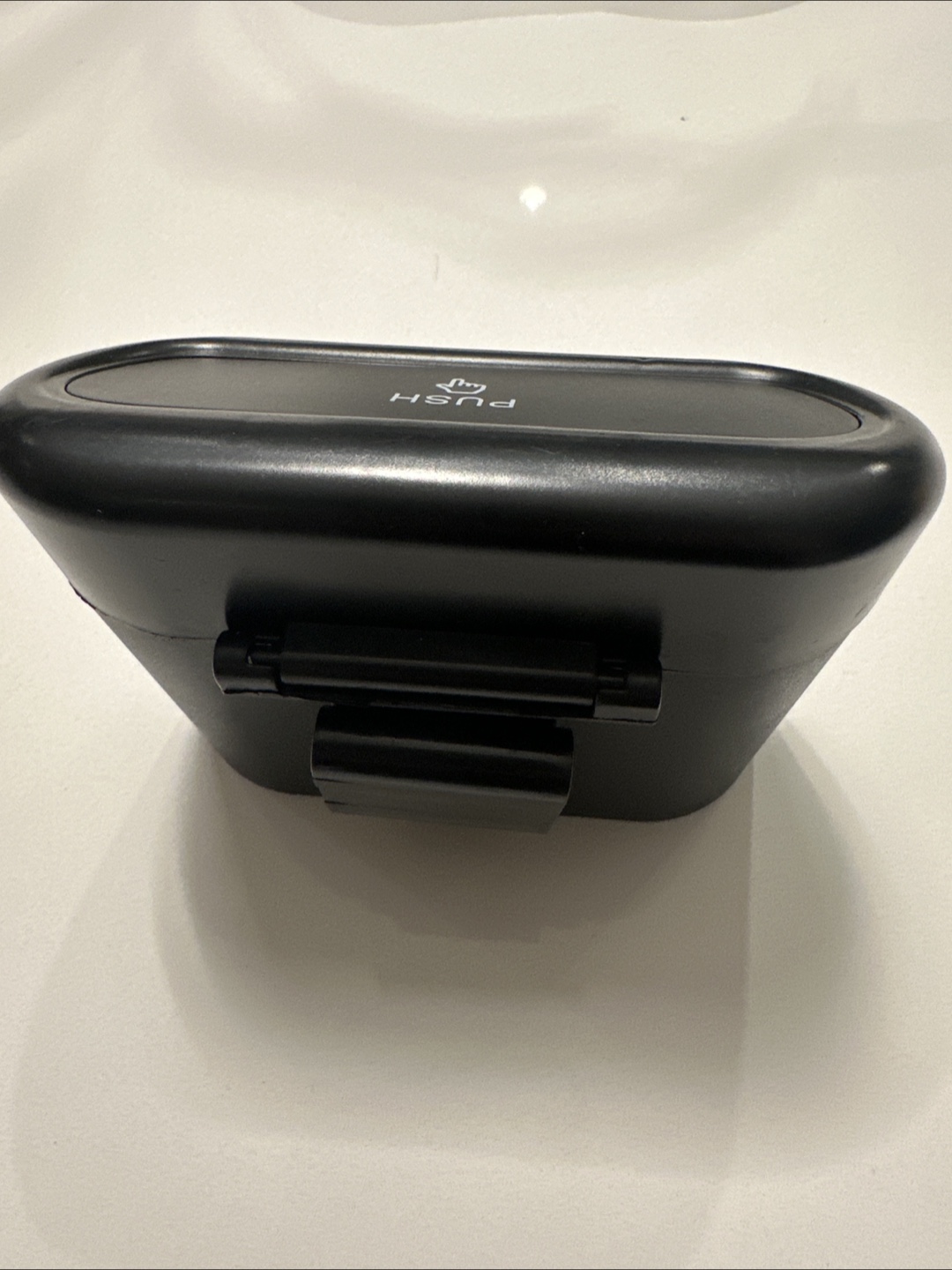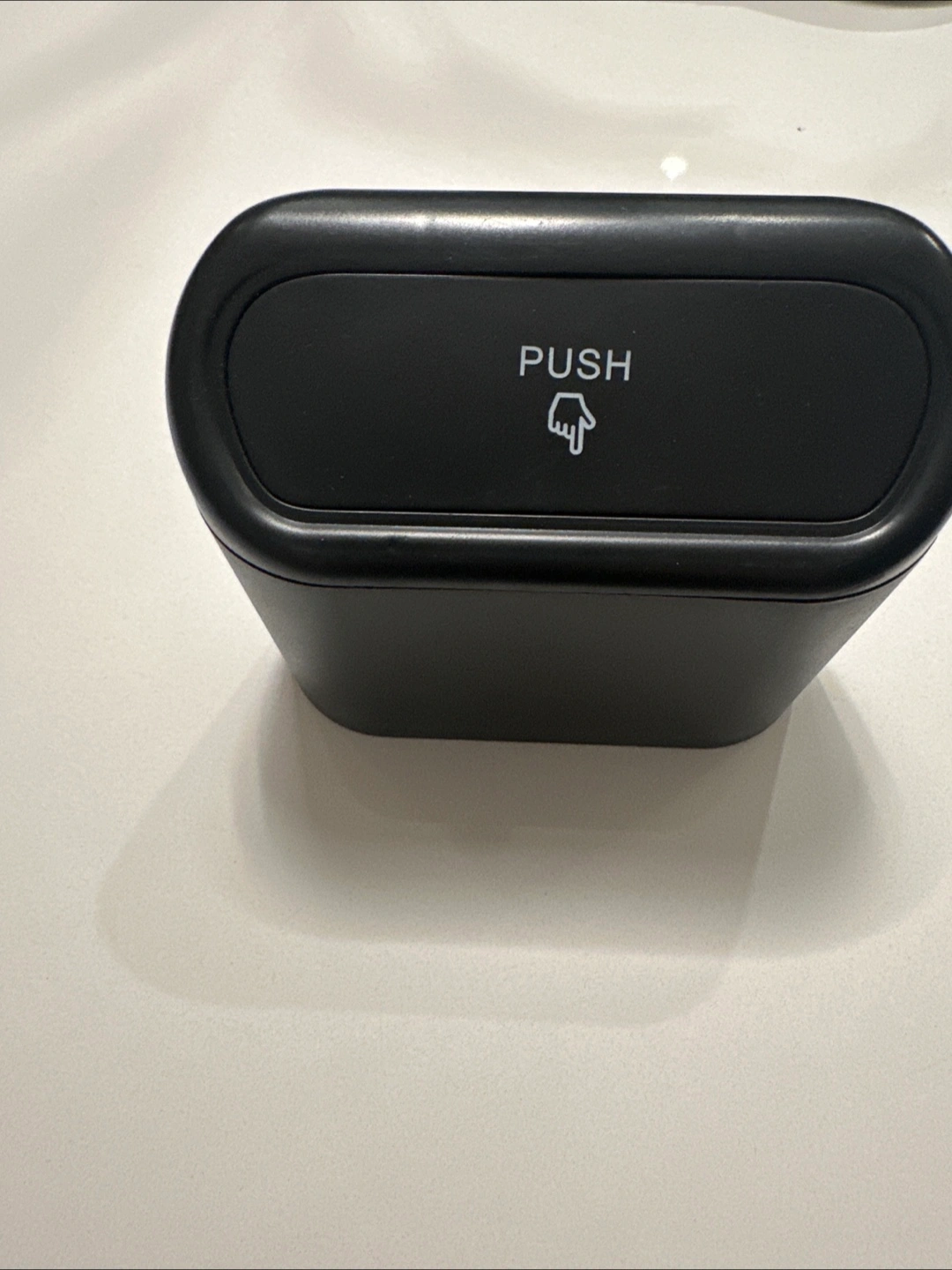 Selling a handy car trash can in black! It's in great condition and perfect for keeping your car tidy. It's a push-top style for easy use while driving. A must-have for any vehicle!