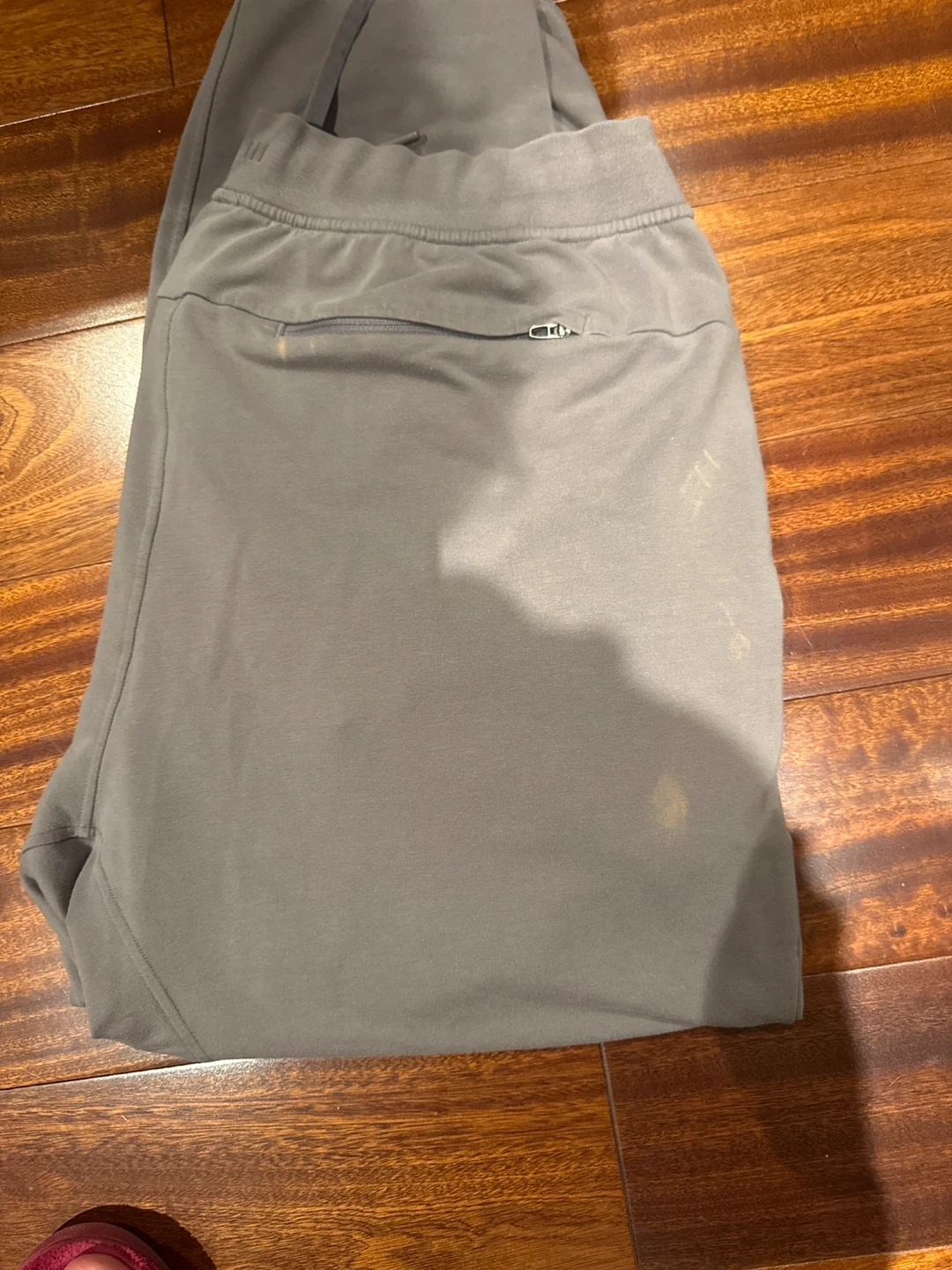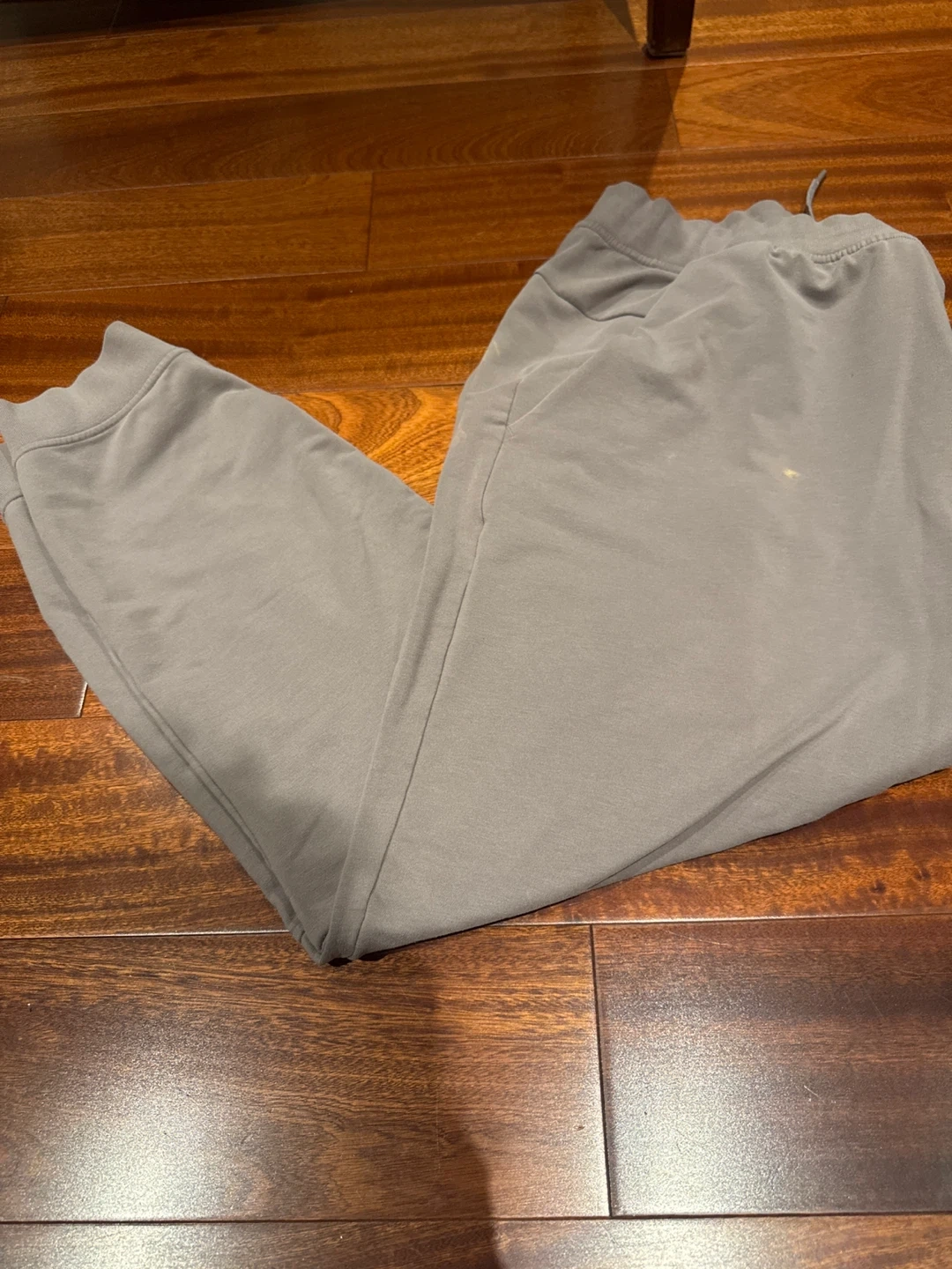 116Selling a pair of Lululemon sweatpants in a greyish colour. They are a size L and made of a comfortable material. There are a few spots on the pants due to chloride.