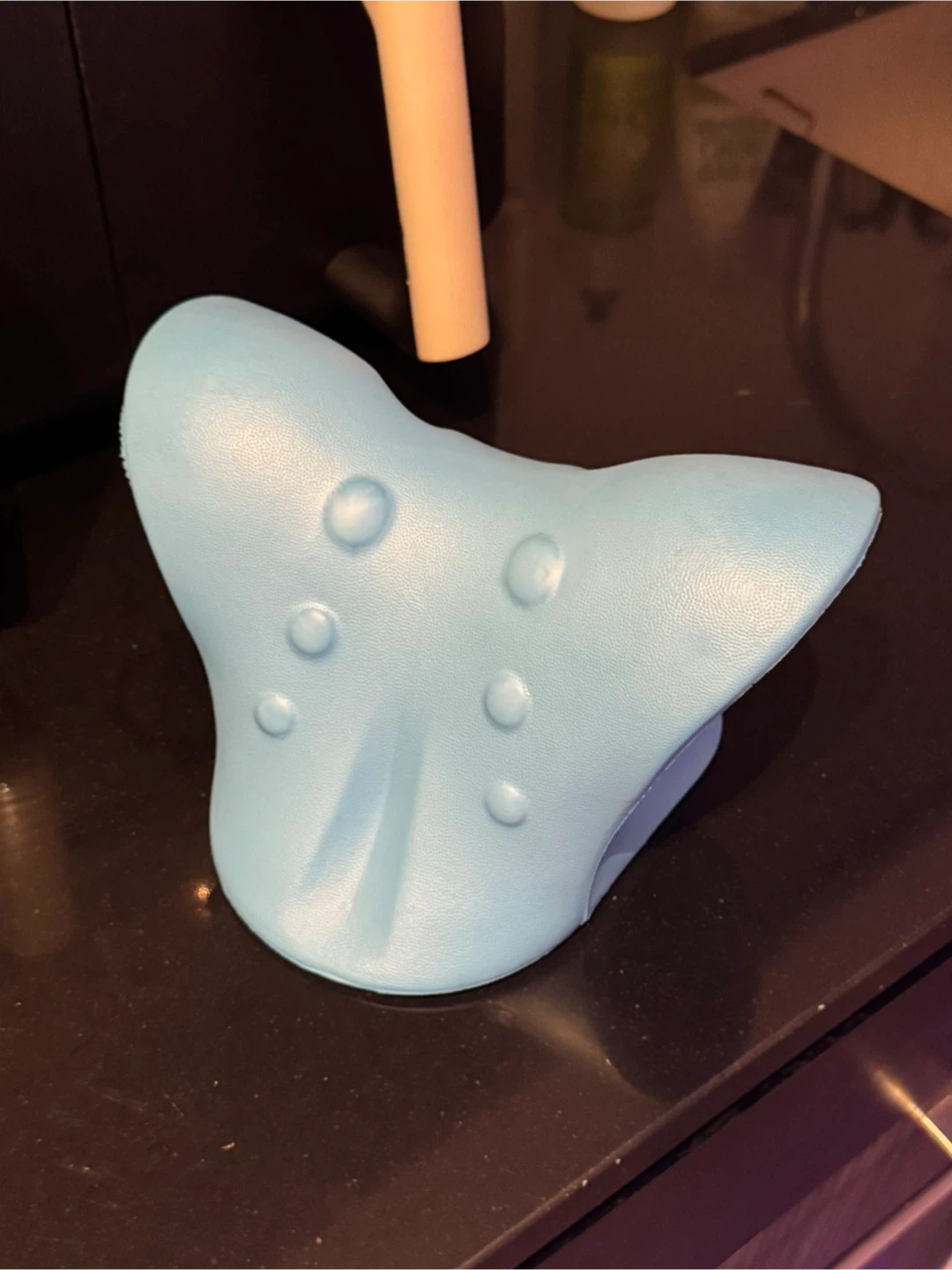 This is a neck and shoulder relaxer cervical traction pillow. It's designed to provide relief and relaxation to your neck and shoulders. It's in good condition and ready for a new home