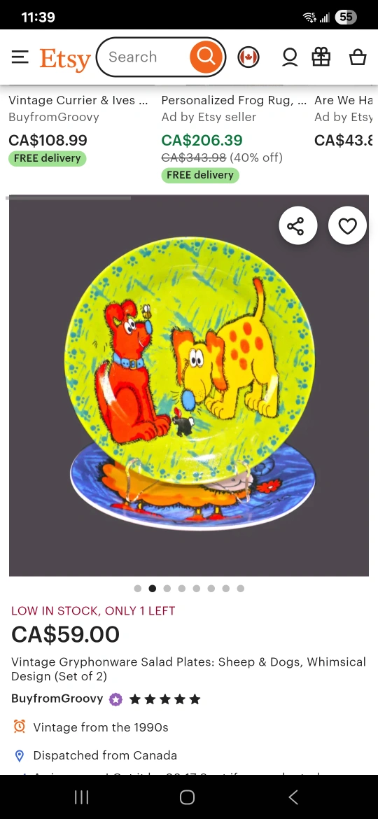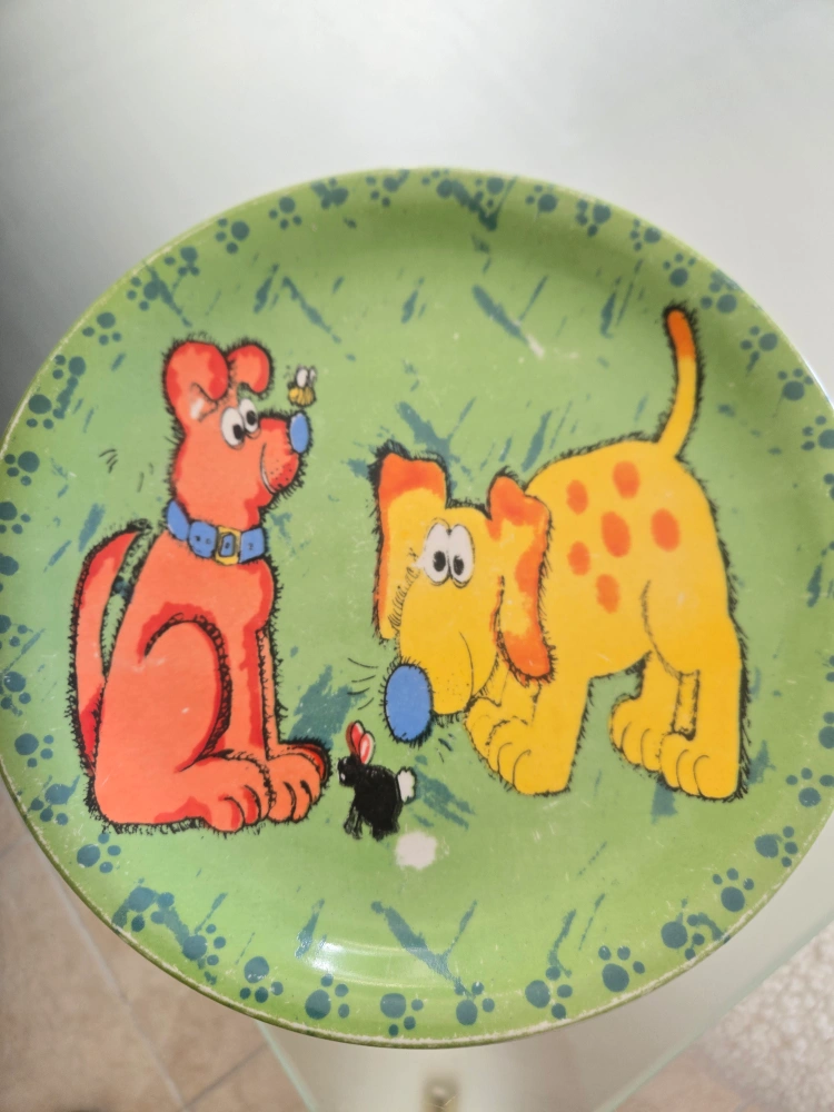 Selling a vintage Gryphonware salad plate featuring a whimsical dog design! It's a super cute piece that would look great in any collection. The plate dates back to the 1990s.