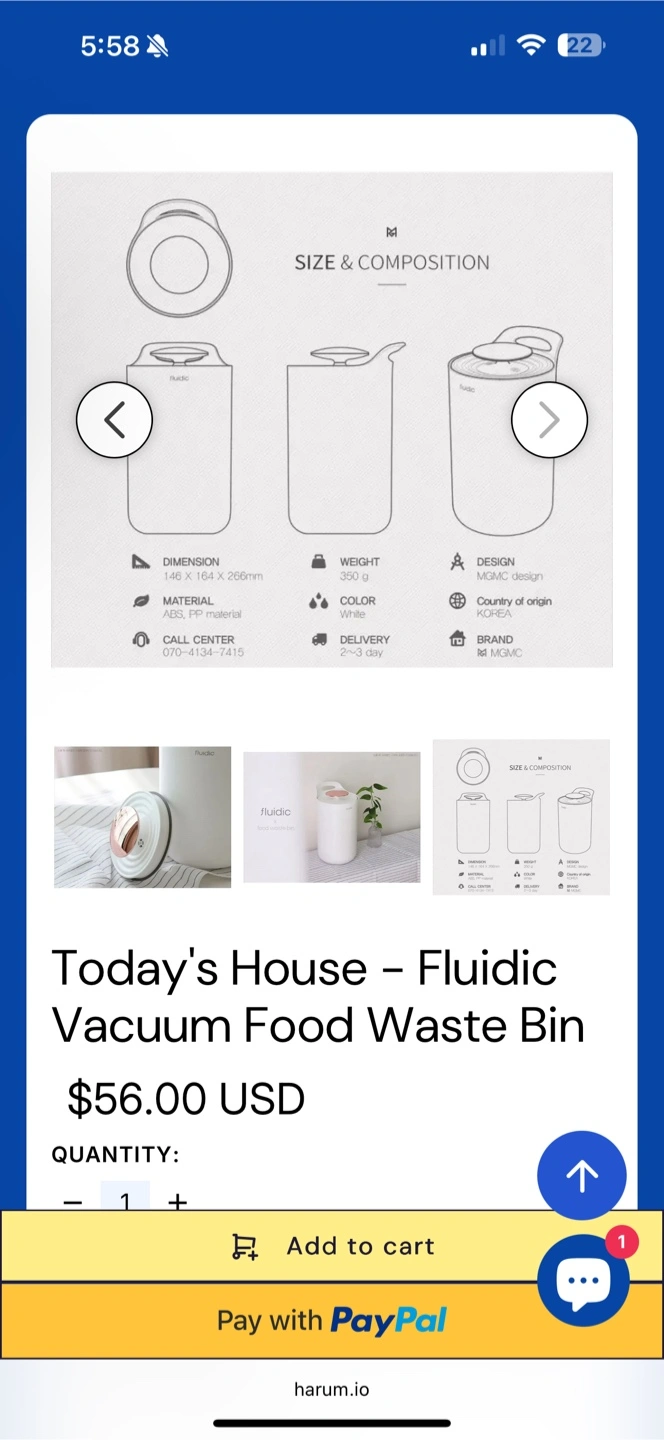 Keep your kitchen tidy with this Fluidic vacuum food waste bin! It's in great condition and ready to help you manage food scraps efficiently. The bin is designed by MGMC and made with durable ABS and PP material. It weighs only 350g and measures 128 x 164 x 206mm. Originally priced at $56.00 USD plus tax Rarely used.