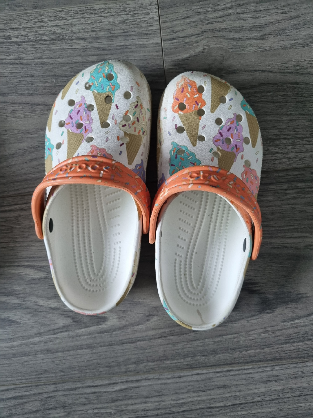 Super cute Crocs with an ice cream print! These are the classic clog style and in great condition.