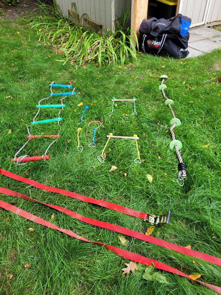 30Get your kids active with this Ninja Warrior obstacle course! It includes a rope ladder, monkey bars, and a slackline. Perfect for outdoor fun and exercise for kids of all ages