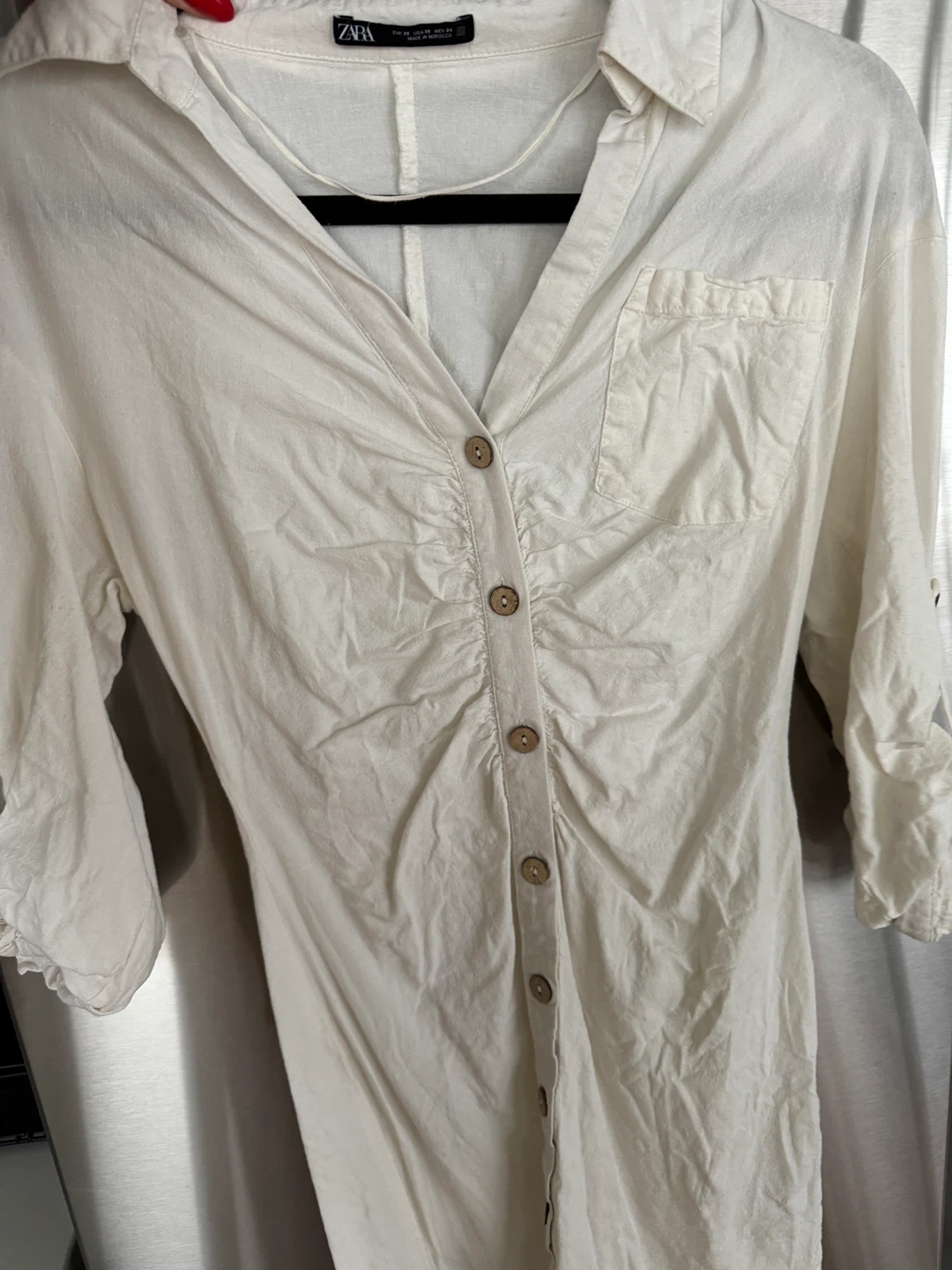Selling a Zara dress in size XS. It clinches at the waist and gives a very flattering figure. If 5’5 or below could wear to work, only worn twice