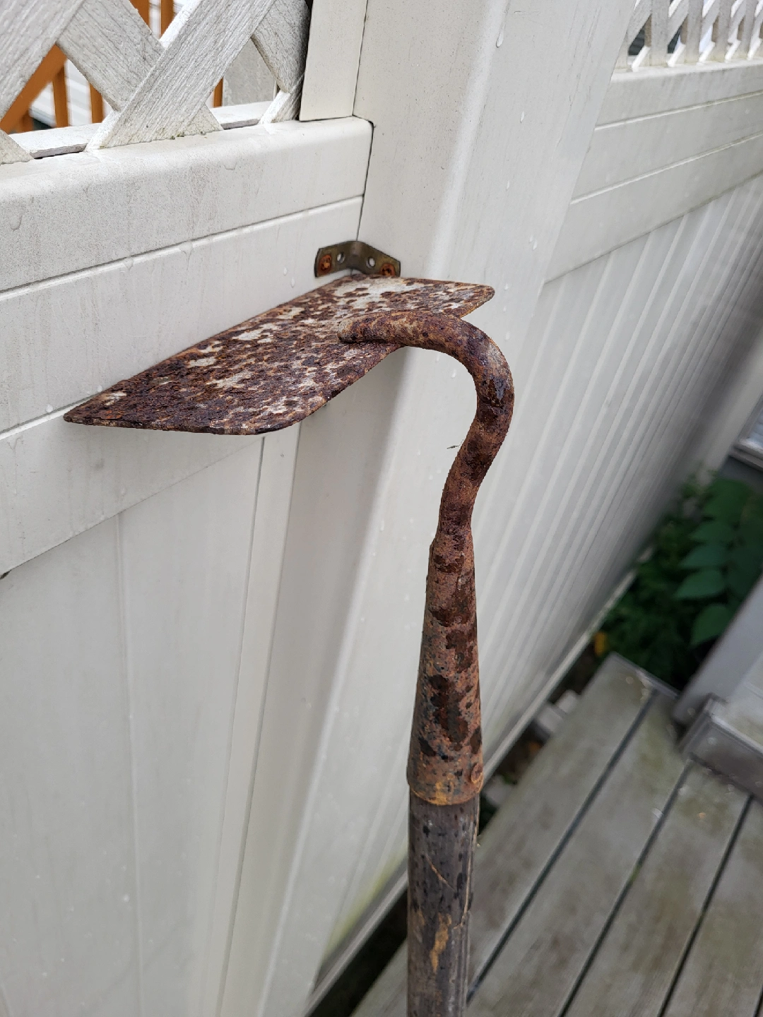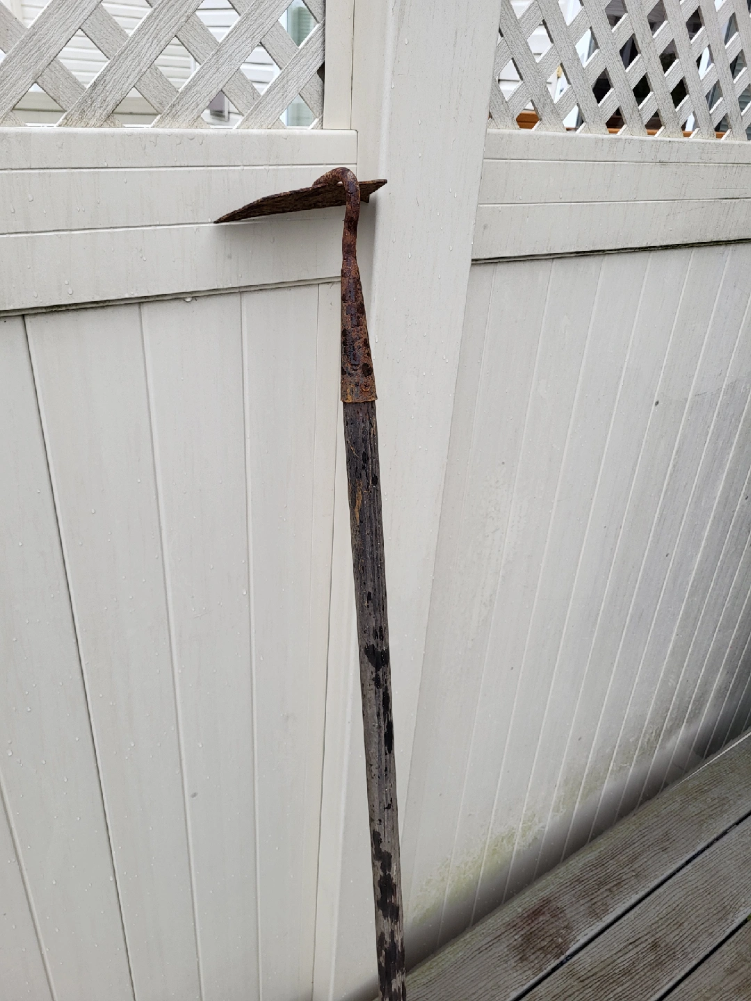 Gardening hoe with a wooden handle.