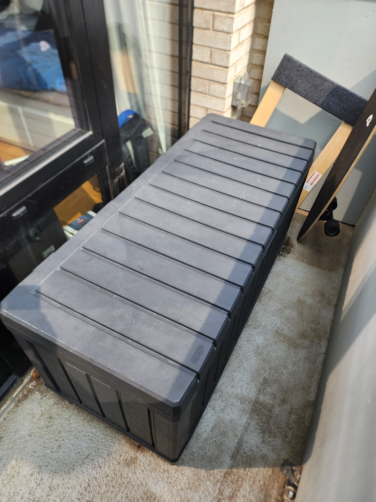 Selling a Keter Westwood deck box with a 150-gallon capacity. It's perfect for storing outdoor cushions, gardening tools, or pool supplies. Keeps everything dry and organized on your patio or deck