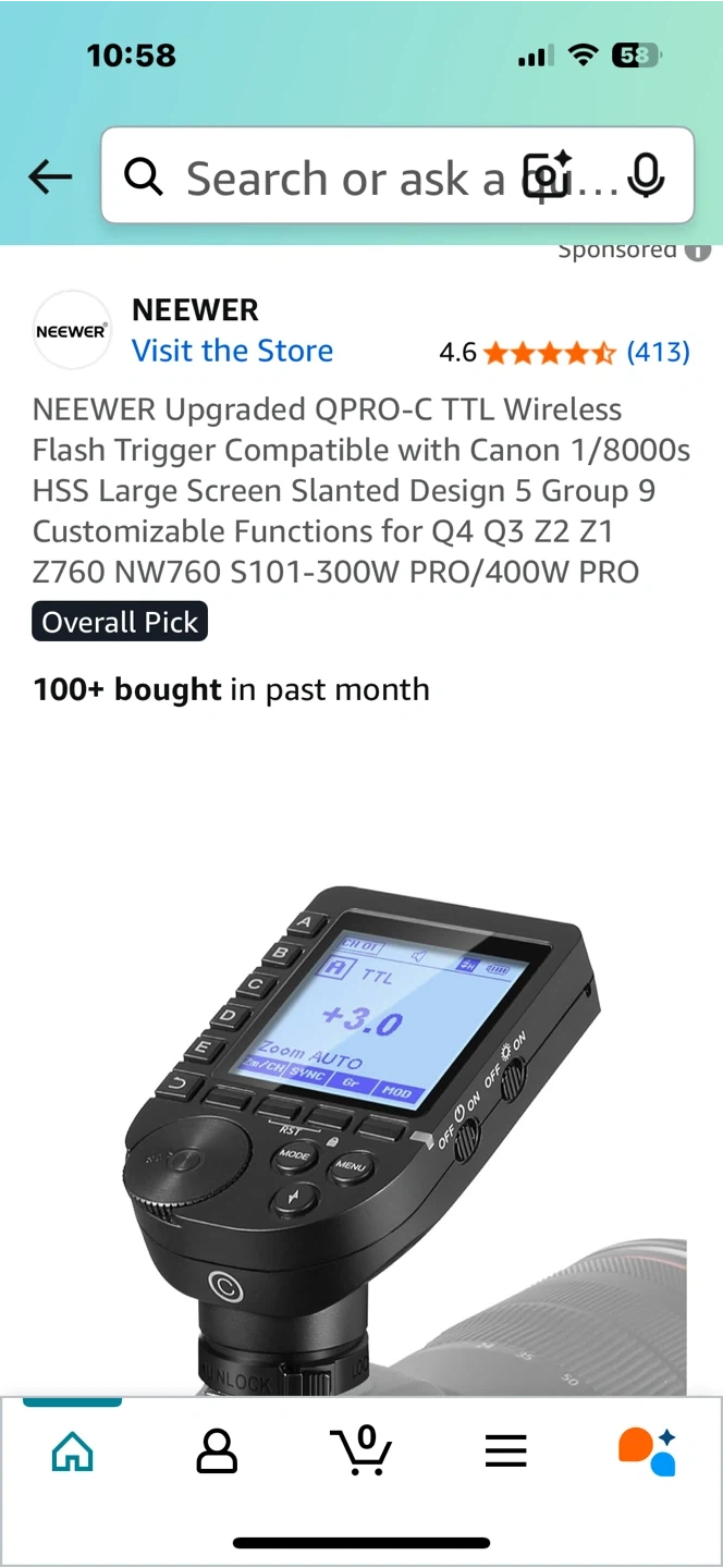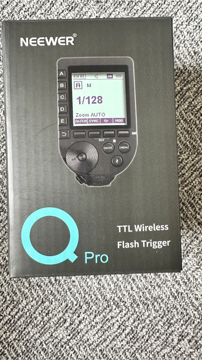 84Selling a Neewer QPro-C TTL Wireless Flash Trigger compatible with Canon cameras. It comes with its original box. This flash trigger is designed with a large screen and a slanted design, offering customizable functions. New open box