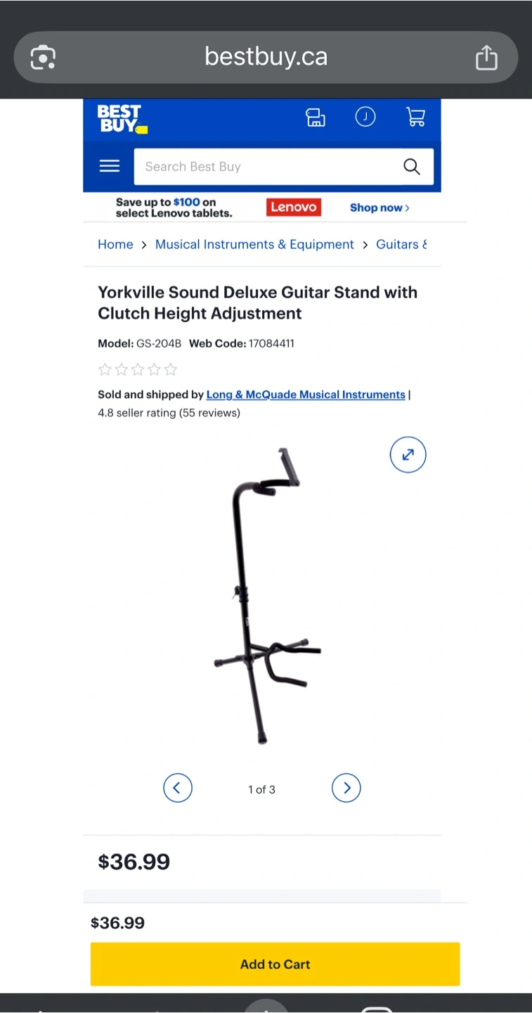 Selling a Yorkville Sound Deluxe Guitar Stand, model GS-204B. It features clutch height adjustment for easy customization. Originally bought for $36.99 + tax ($41.80).