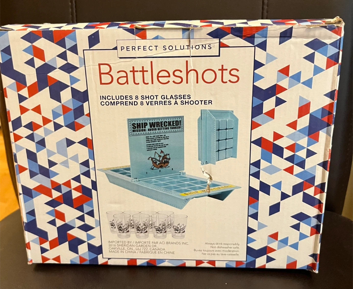 Selling a brand new Battleshots drinking game by Perfect Solutions! This set includes 8 shot glasses and the game board. It's perfect for parties and get-togethers. The box is included!