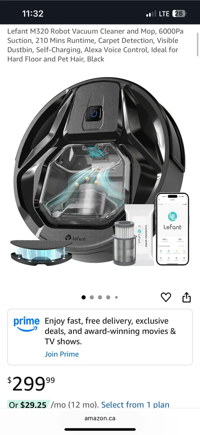 142Selling a Lefant M320 Robot Vacuum Cleaner and Mop. It has 6000Pa suction power and a 210-minute runtime. It also has carpet detection, a visible dustbin, and self-charging capabilities. It's also Alexa voice control compatible and ideal for hard floors and pet hair