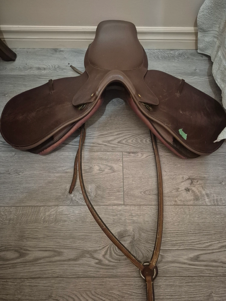 Selling a lightly used English all purpose leather horse saddle. Only used a handful of times. 16 inch seat. Make is a Crosby. Good show saddle or just for pleasure riding. Paid $2800.00 U.S.