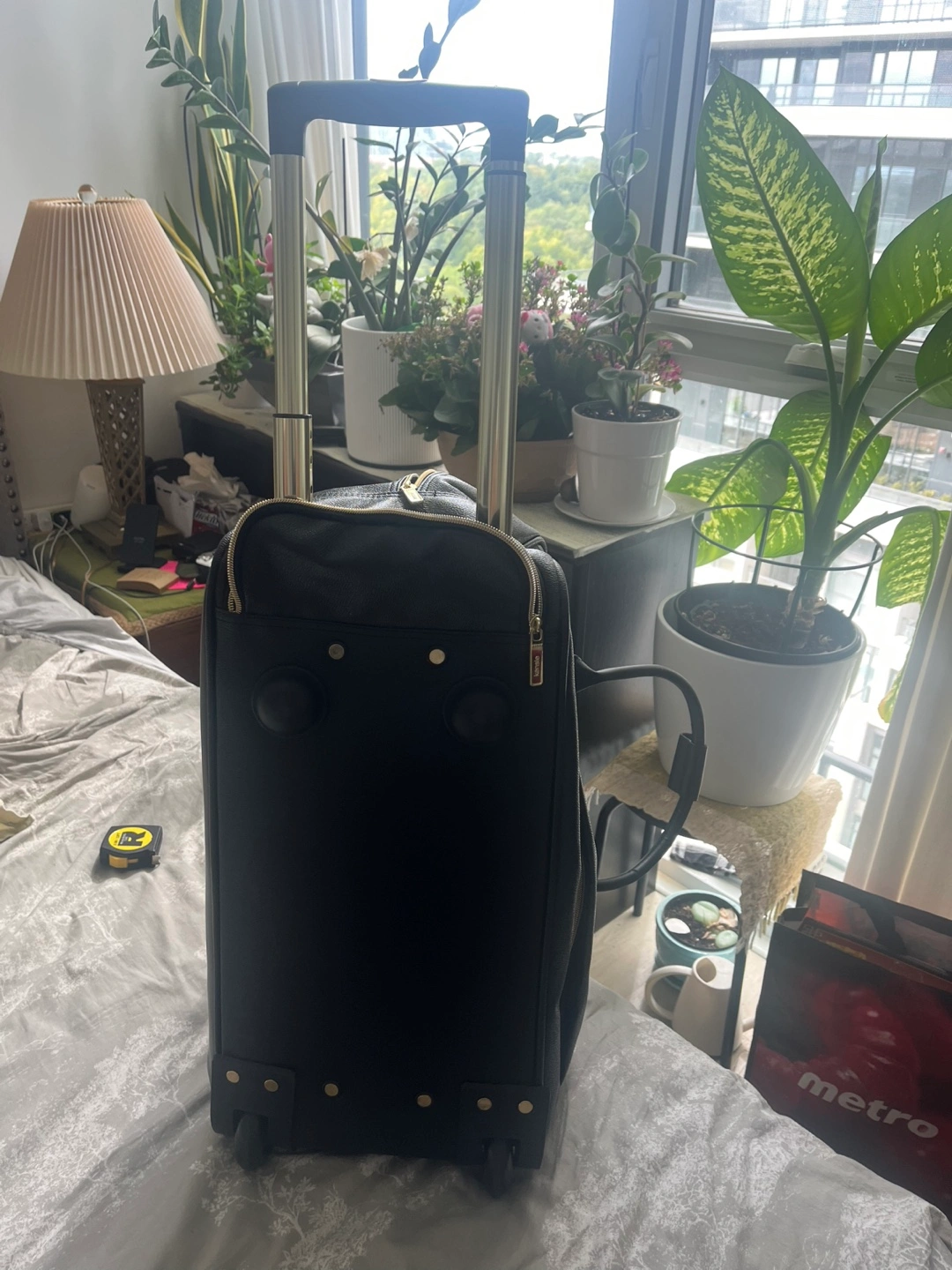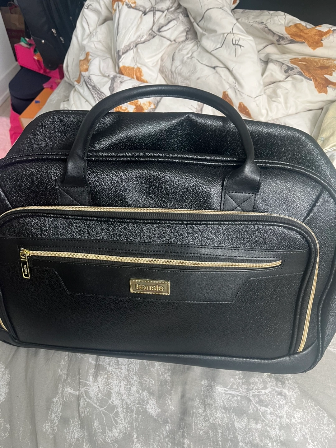 Selling a Kensie carry-on luggage in black. It's in great condition and ready for your next trip! Features include a retractable handle and smooth-rolling wheels for easy maneuvering. Perfect for weekend getaways or as a cabin bag