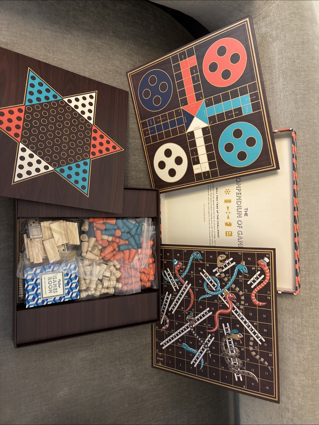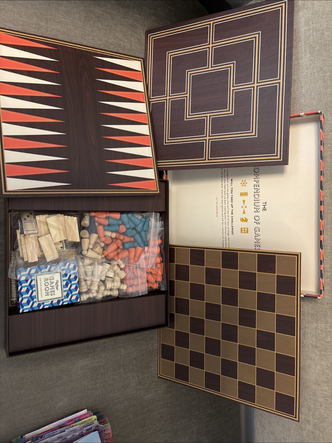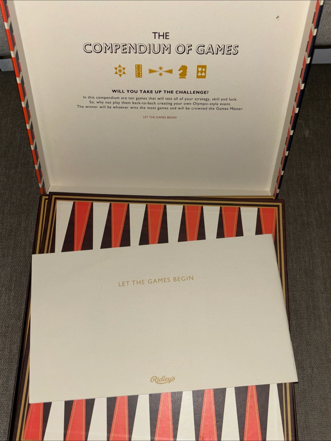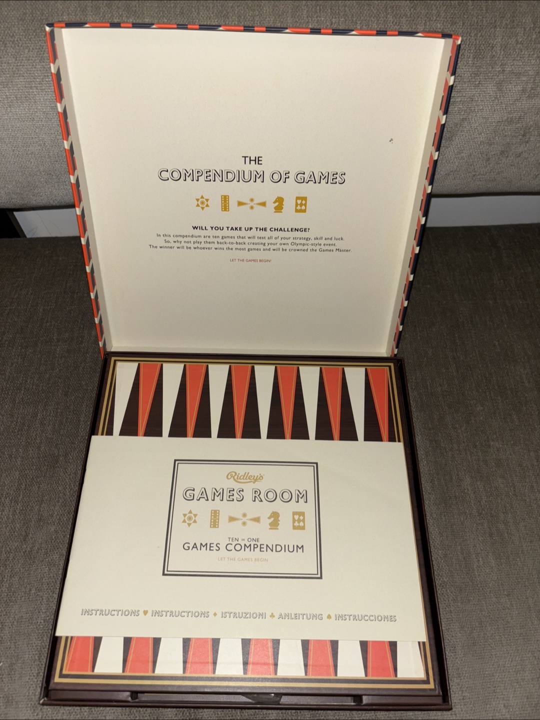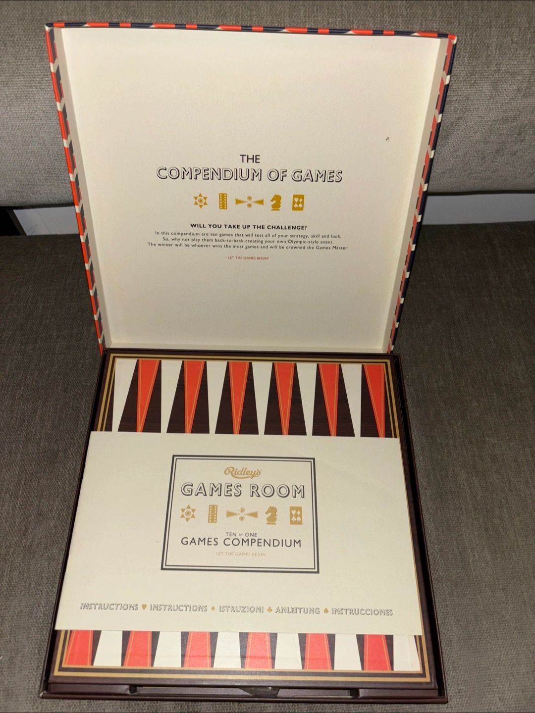 Set of 2- Ridley's Games Room Ten in One Games Compendium! It includes a variety of classic games, all neatly organized in a stylish box. Perfect for family game nights or a fun gift for game enthusiasts