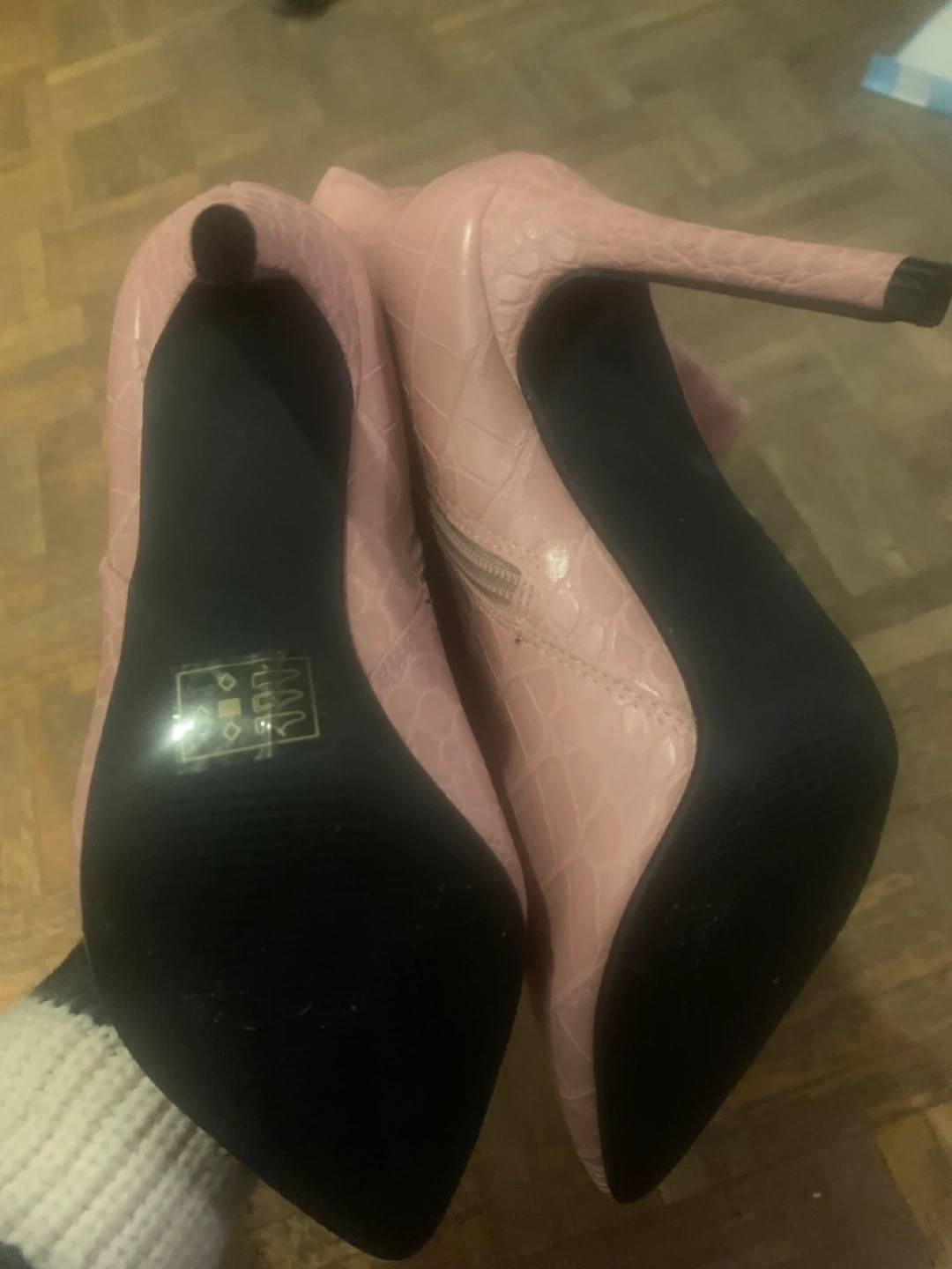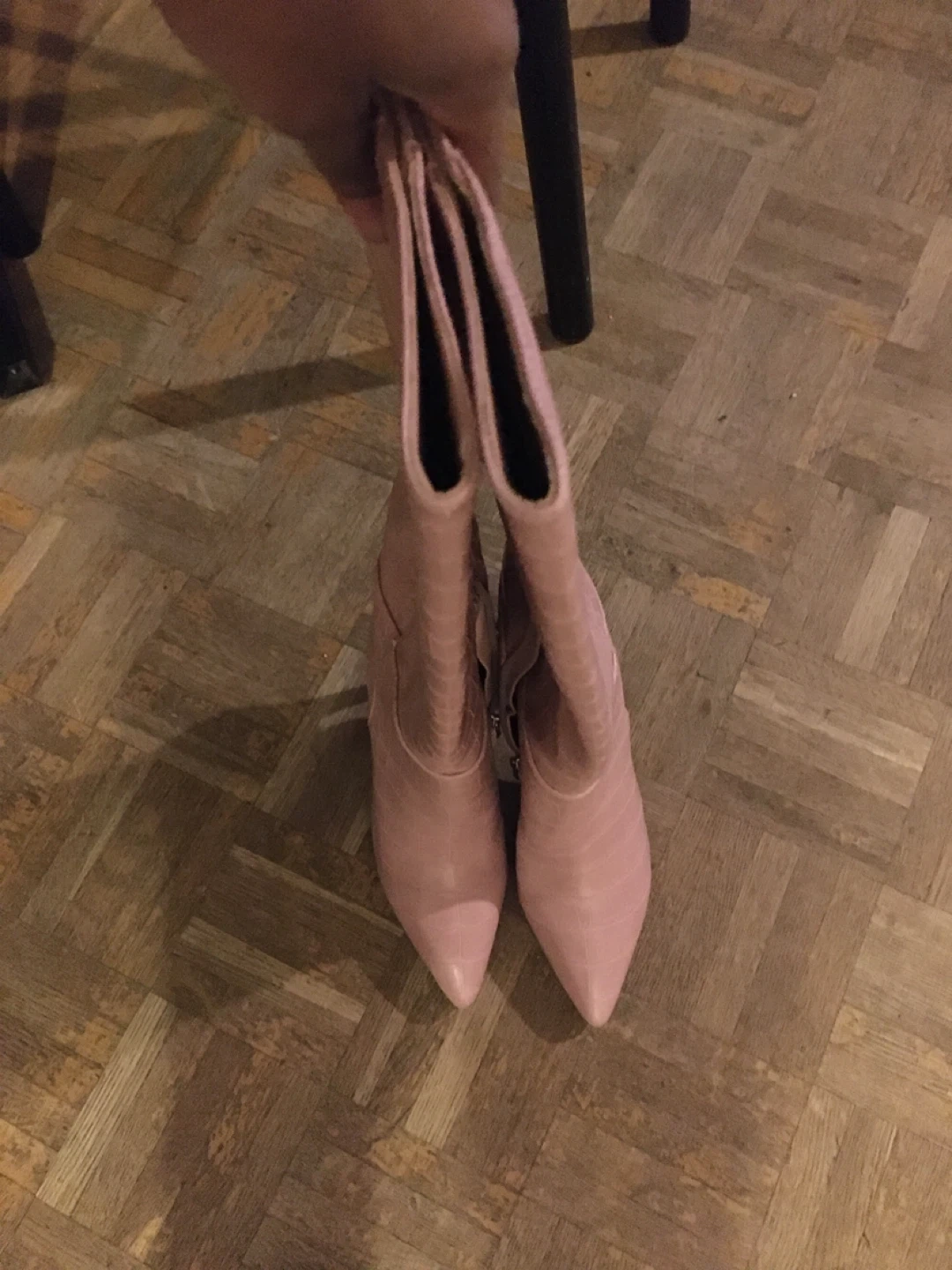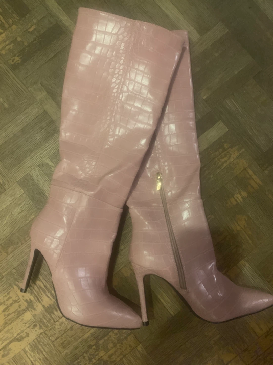 Selling a pair of stylish pink Guess over-the-knee heeled boots with a croc texture. They're perfect for adding a pop of colour and a bit of edge to any outfit. Check out the photos for a closer look!