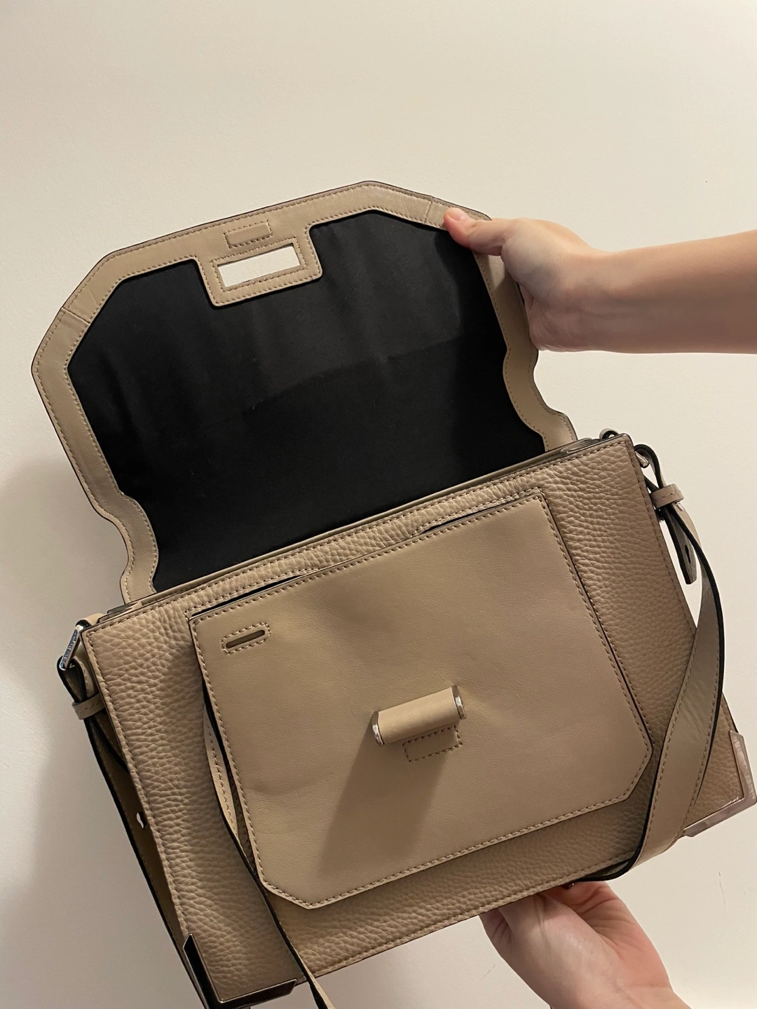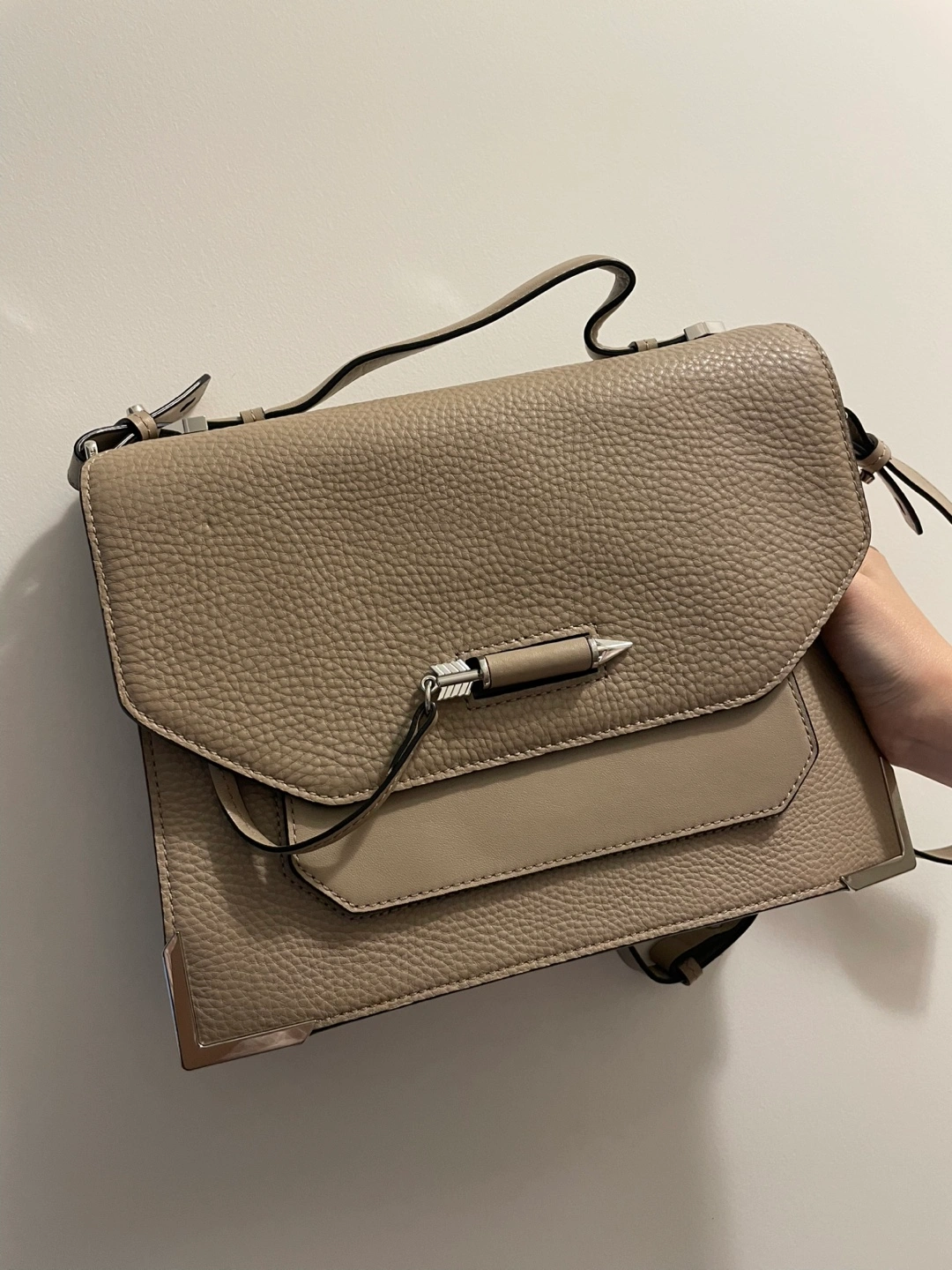 Grained and buffed leather messenger bag in a beautiful beige colour!