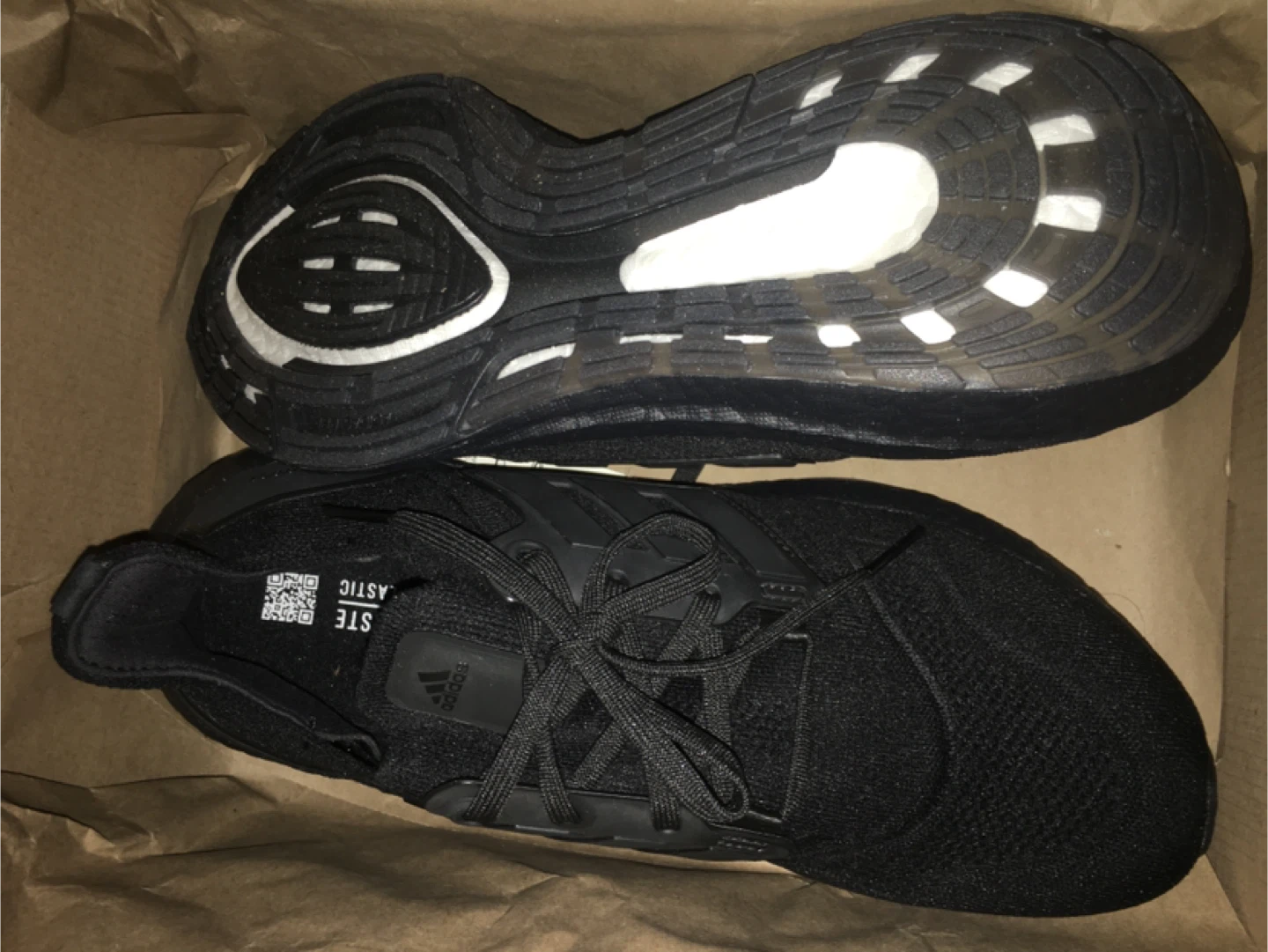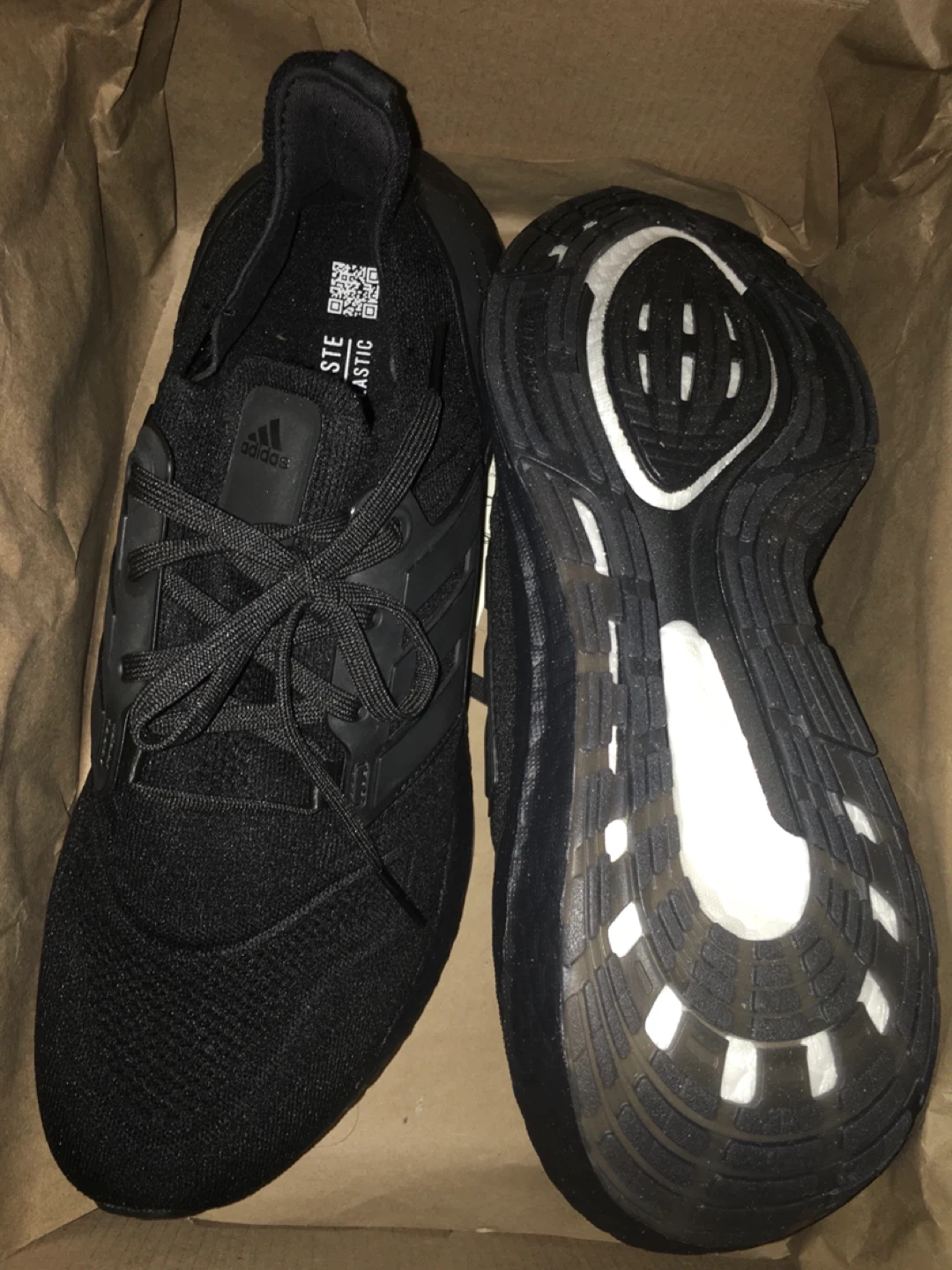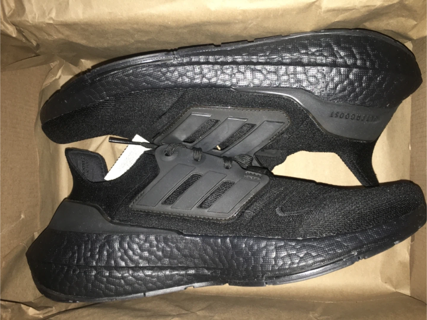 Selling a pair of Adidas Ultraboost 22 W running shoes in black. They are a women's size US 10. The model number is GX5587. Comes with the original box!