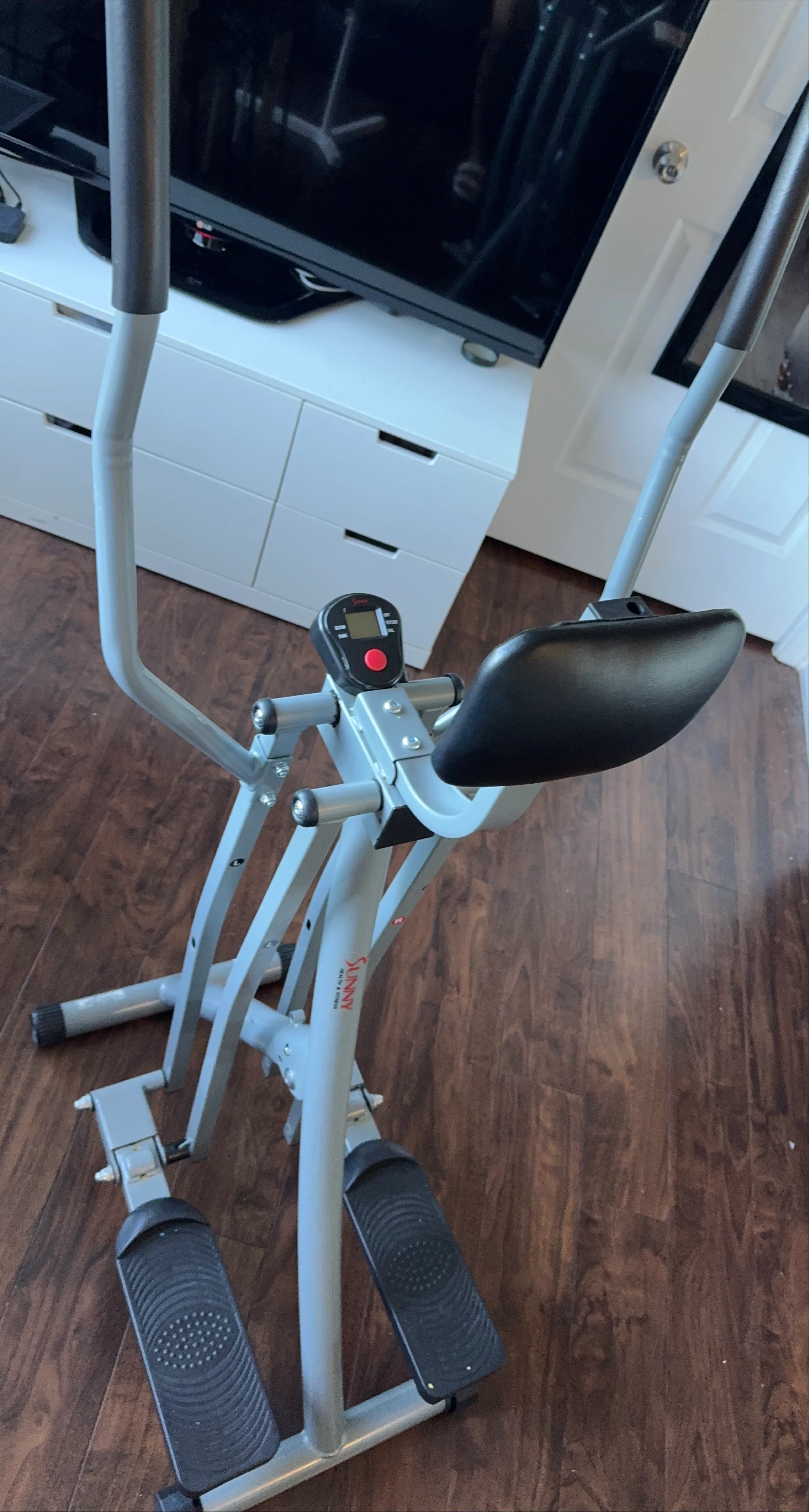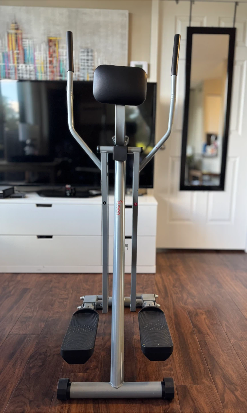 Get moving with this Sunny Health & Fitness Air Walk Trainer! It's a great way to get some exercise in the comfort of your own home. This trainer is in good condition and ready for its next owner. Perfect for small spaces