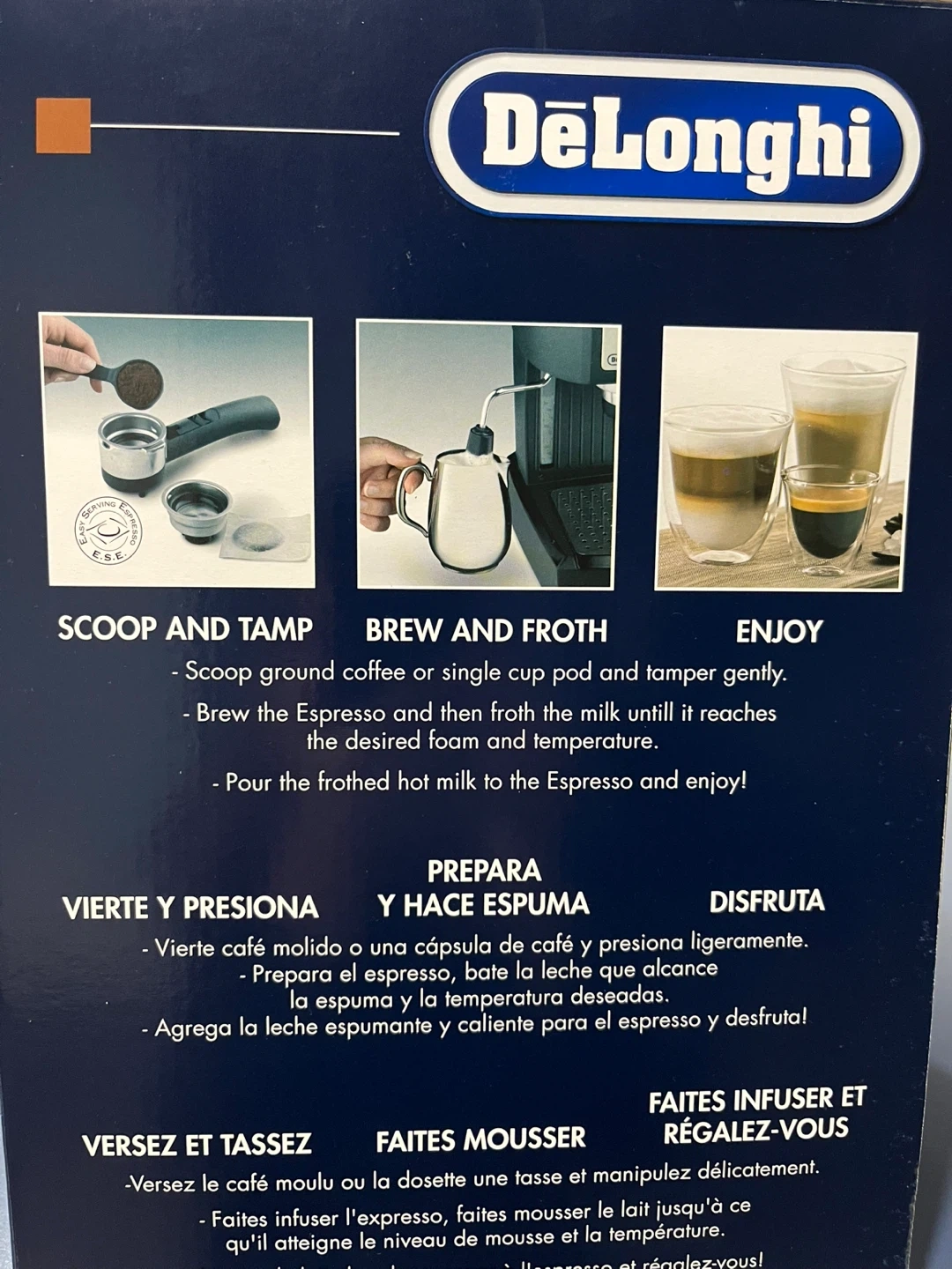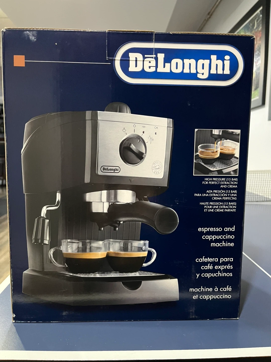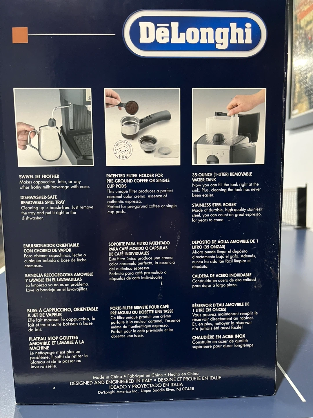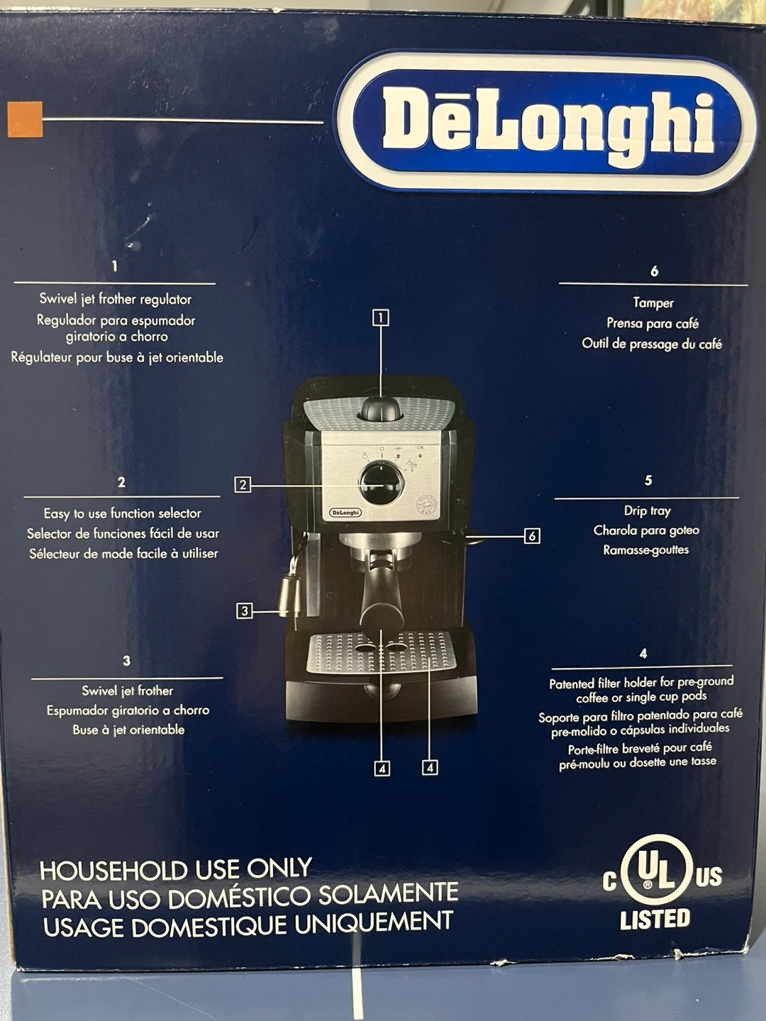 This DeLonghi machine is designed for easy use and perfect extraction every time. It features a high-pressure system for rich crema and delicious flavour. Also includes a swivel jet frother for creating creamy cappuccinos and lattes. The 35-ounce (1-liter) removable water tank makes cleaning a breeze!