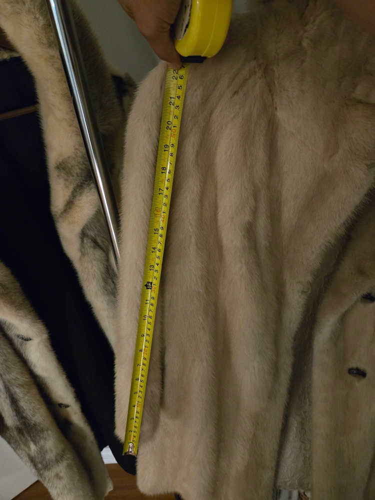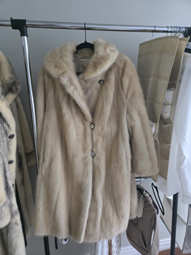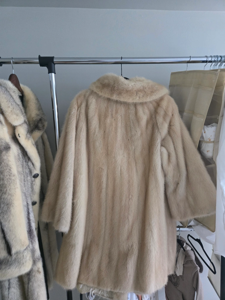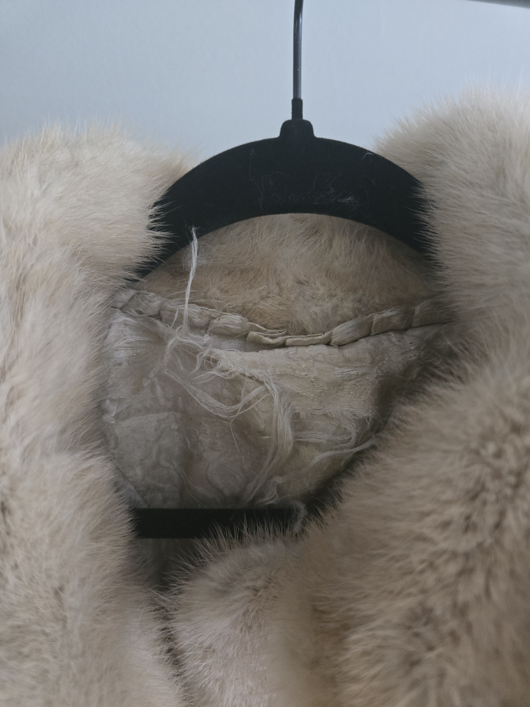 Selling a vintage fur coat in a light beige colour. It's in good condition, perfect for keeping warm during the colder months. Please take a look at the photos to see the details!
