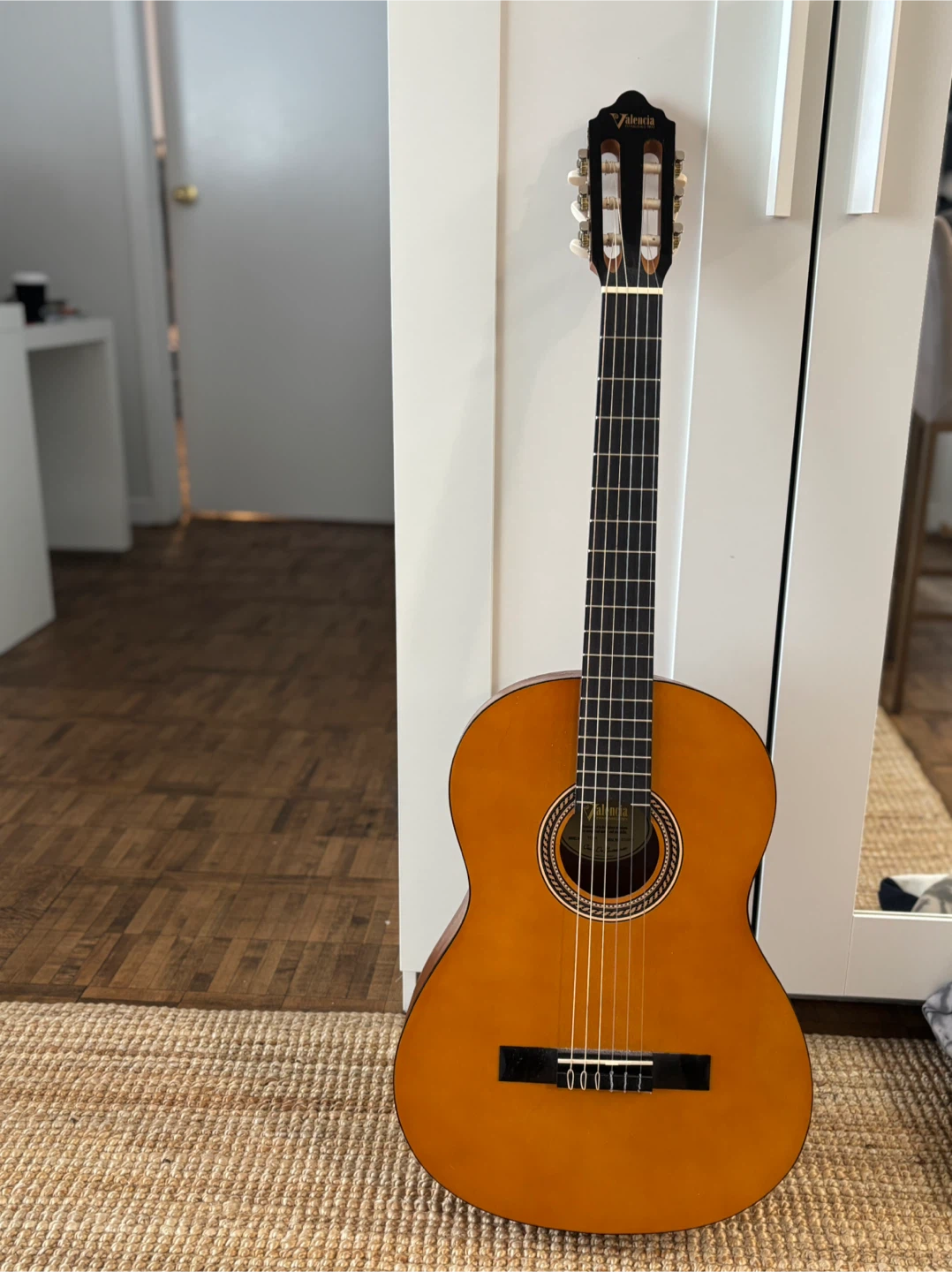 Selling a Valencia classical guitar in antique natural. It's in great condition and ready for a new home. This guitar is perfect for beginners or those looking for a smaller instrument. Retails for $172