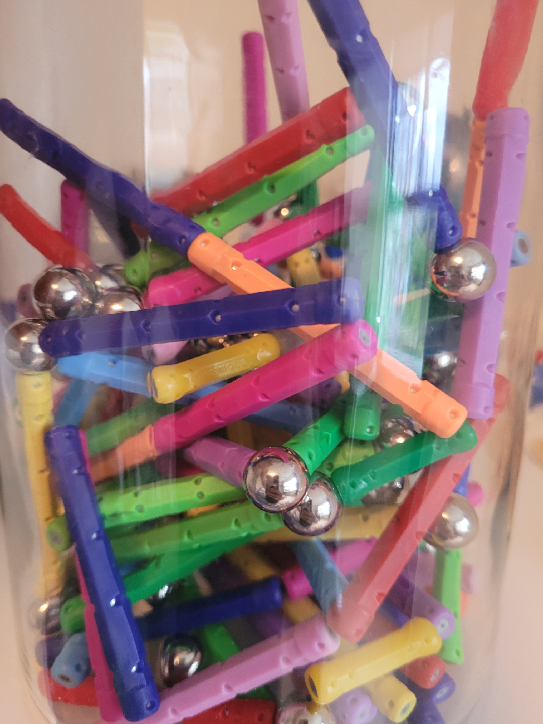 A pouch full of colourful magnetic sticks and metal balls for creative building! Great for kids and adults alike, this set encourages imagination and problem-solving skills.