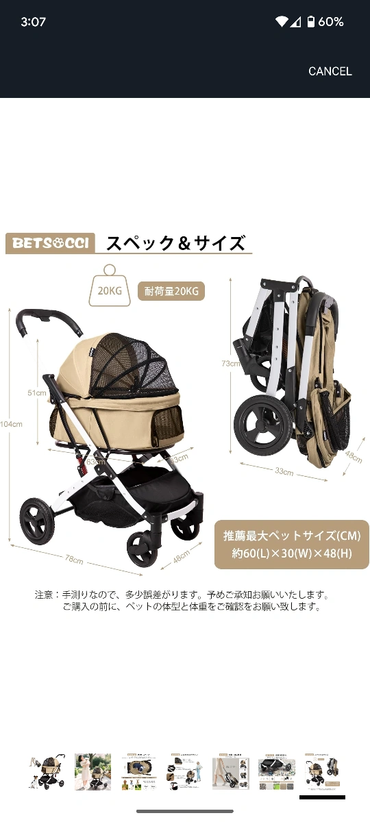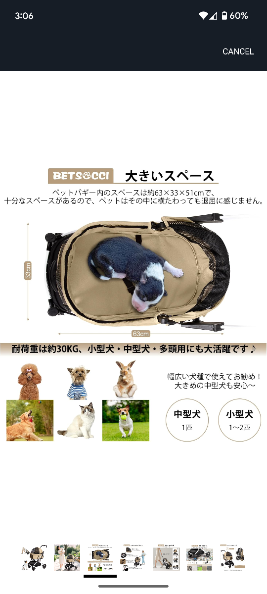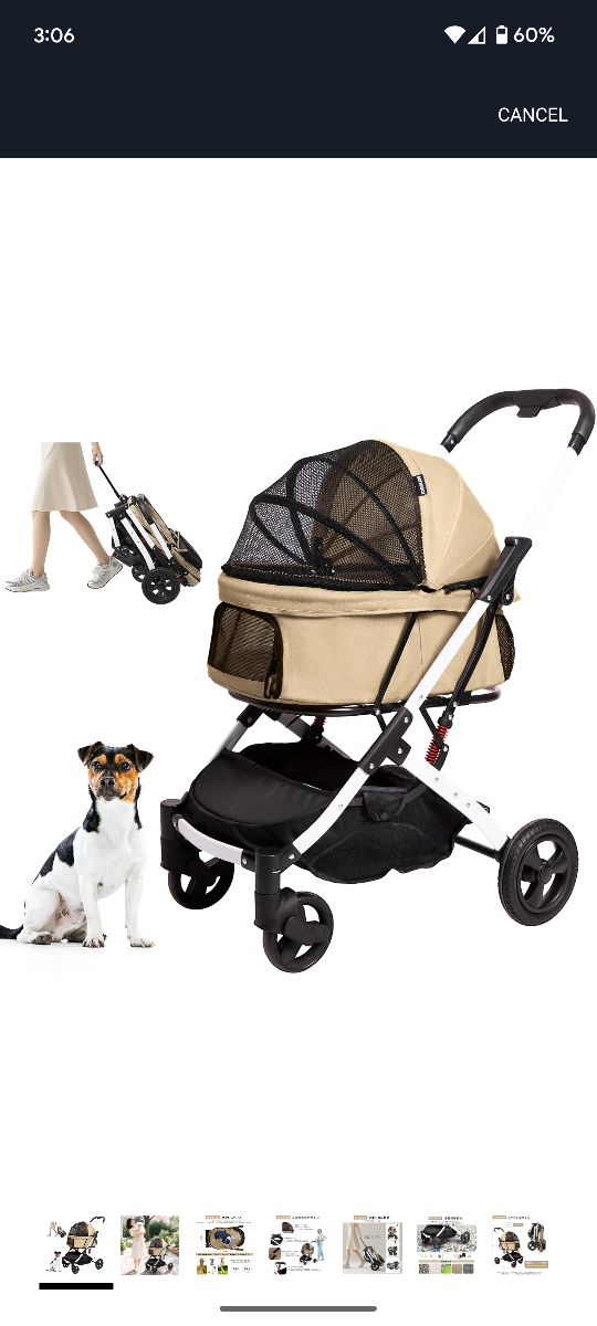 Selling a brand new BETS&OCCI pet stroller! It features a spacious interior (63 x 33 x 51 cm) and can hold up to 30kg. The stroller is designed for small to medium-sized dogs and is easy to fold for storage and transport. It also has a mesh window for ventilation and a storage basket underneath for your pet's essentials