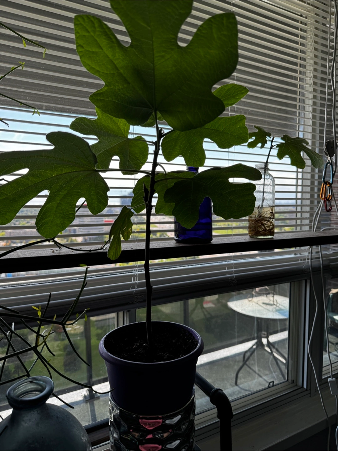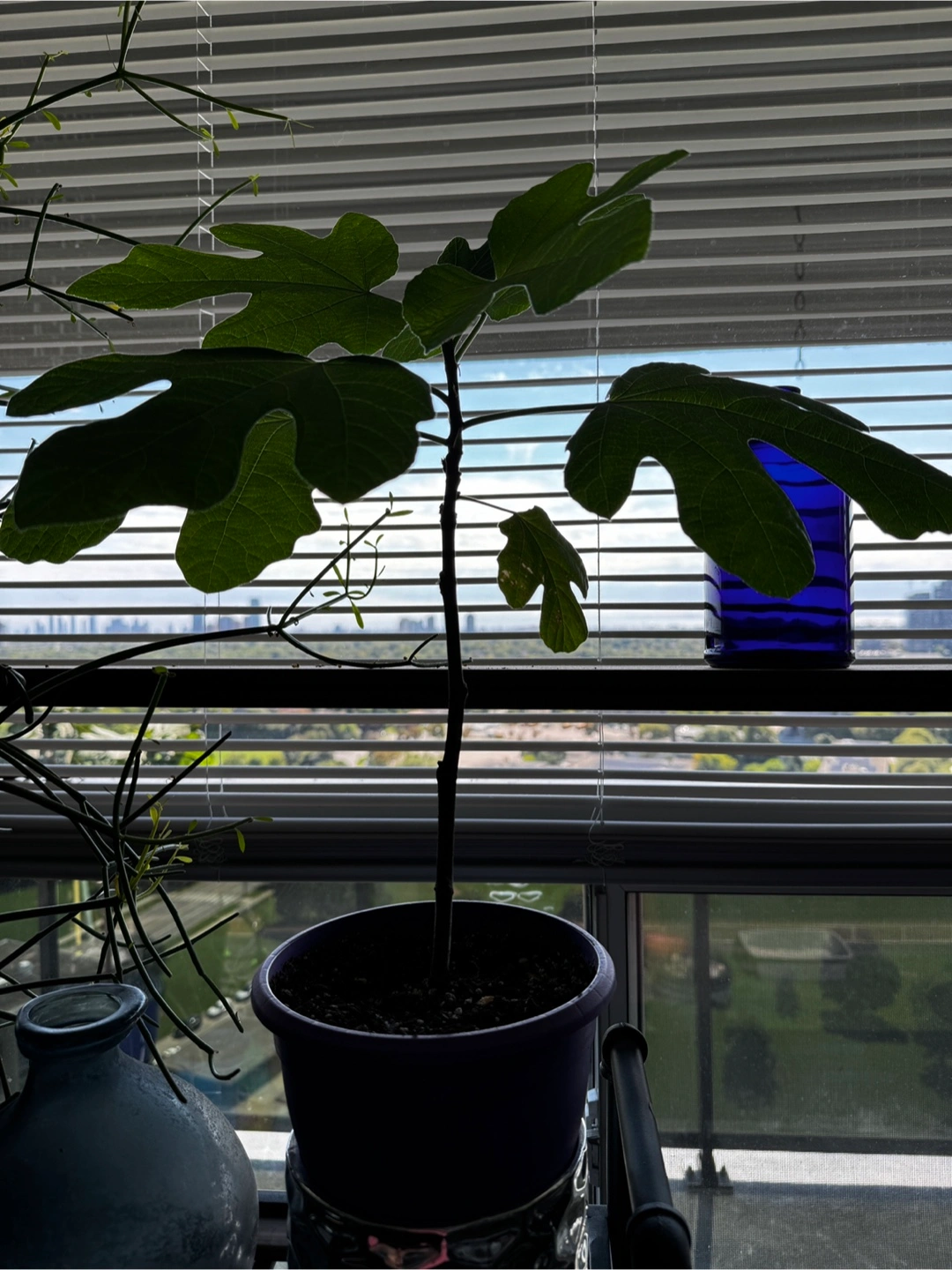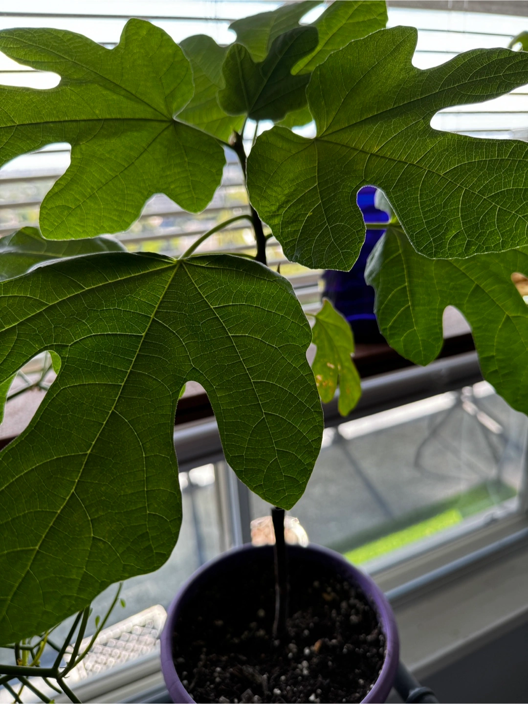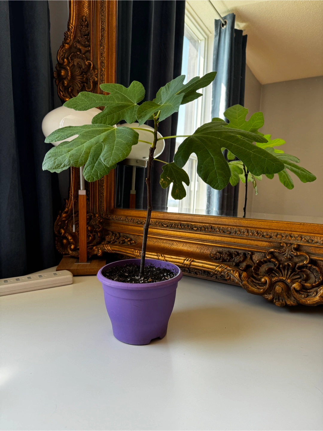 Selling a fig tree plant in a purple pot. It's a lovely plant that would look great in any home!