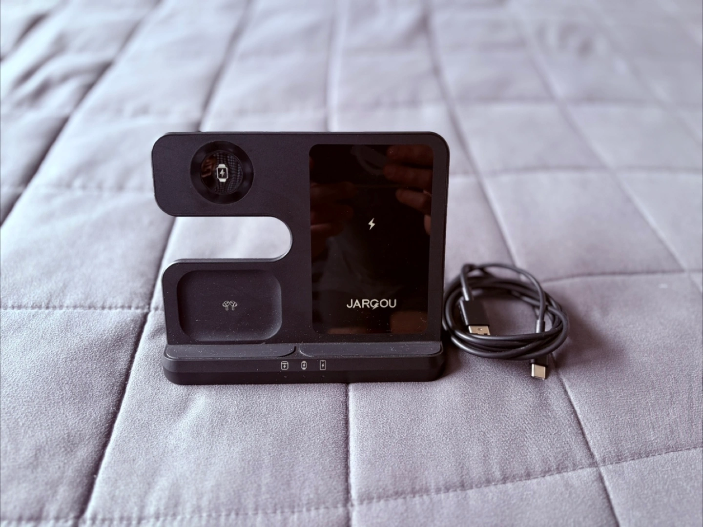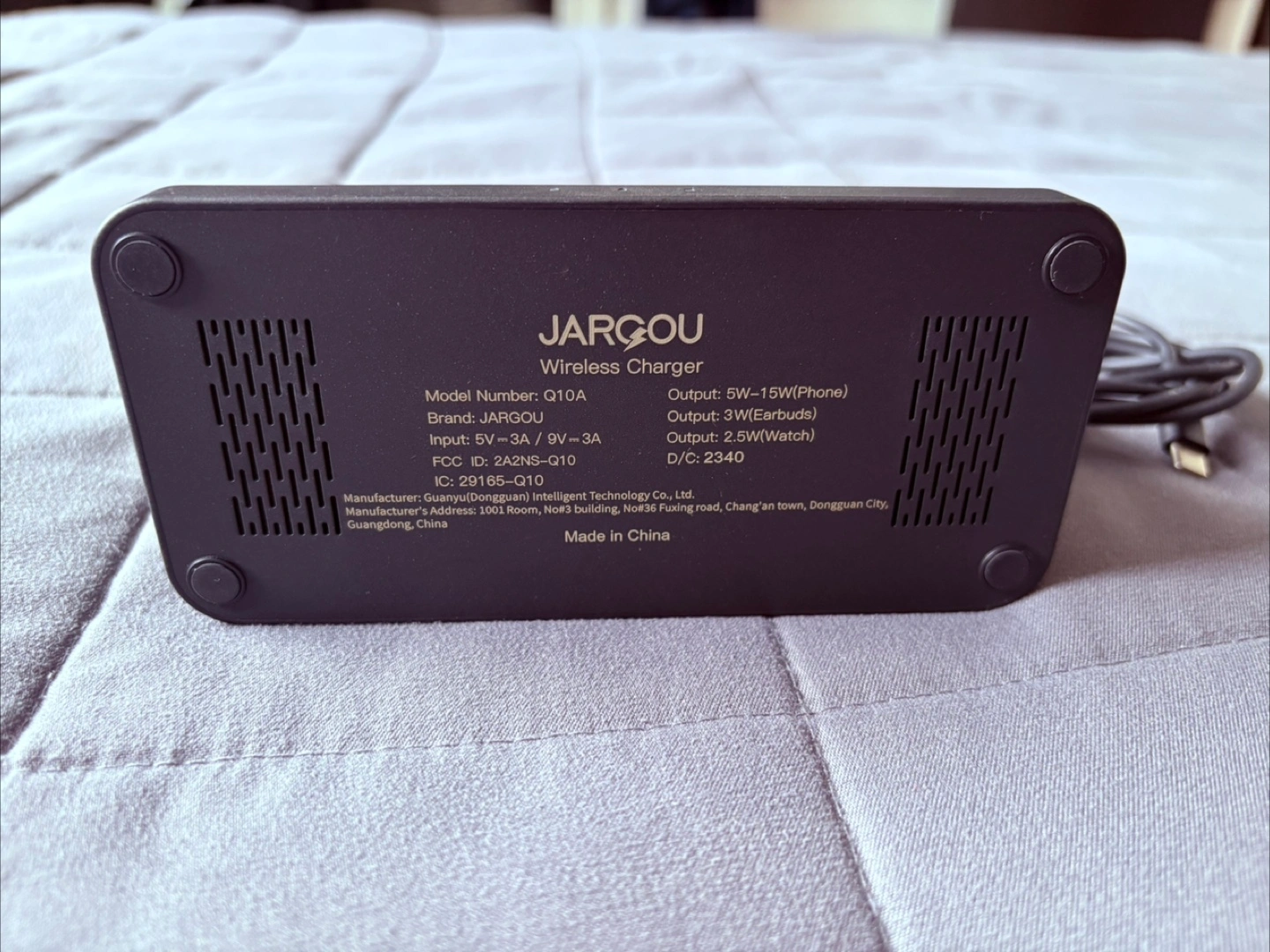 Selling a Jargou wireless charger, model Q10A. It's in great condition and ready to keep your devices powered up! It can charge your phone, earbuds, and watch all at once. Includes the charging cable.