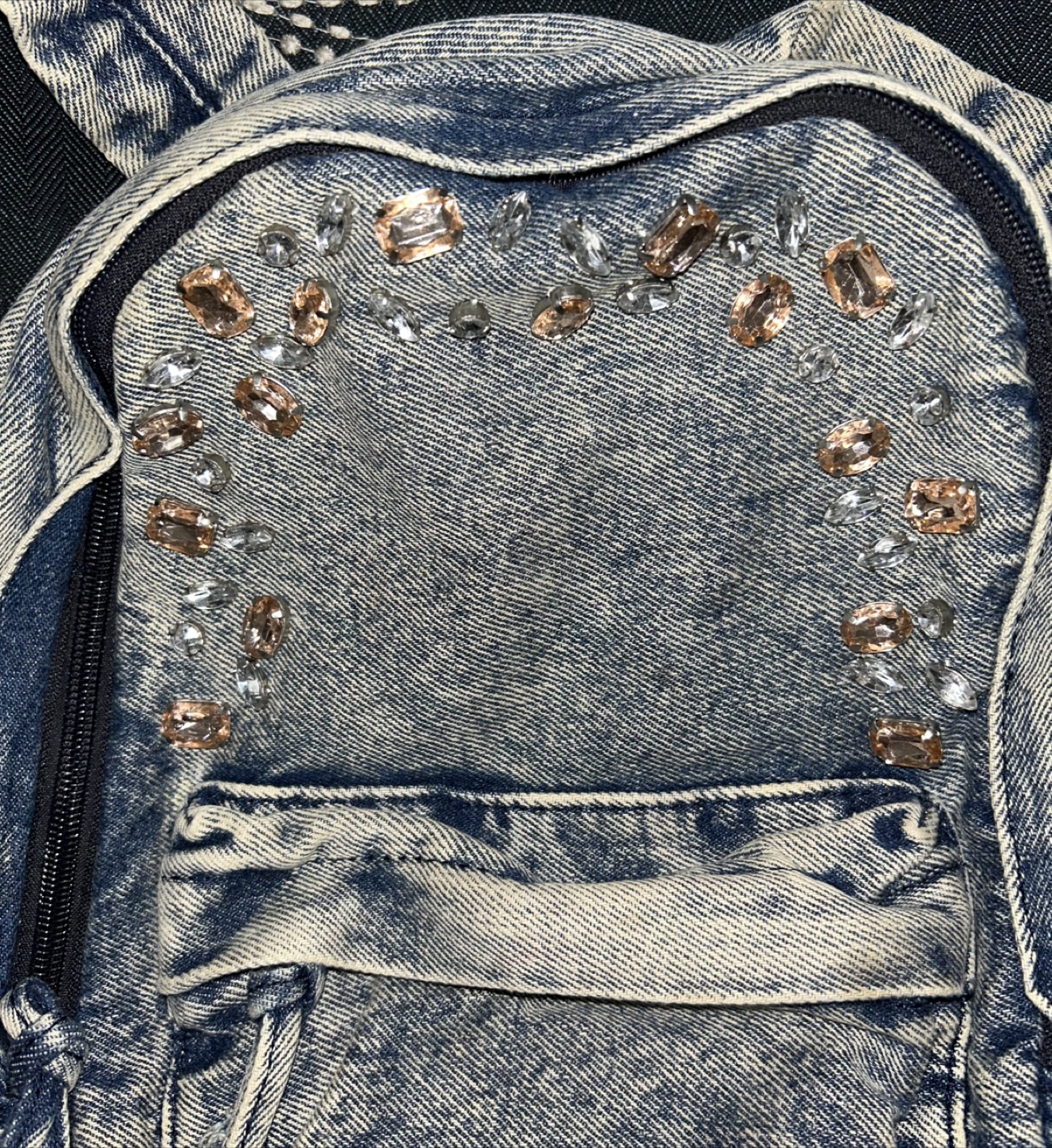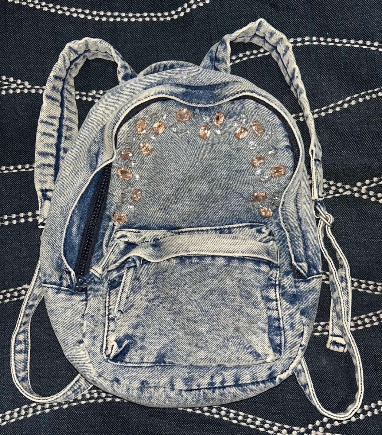 Zara Girls Small Jewel-Embellished Denim Backpack