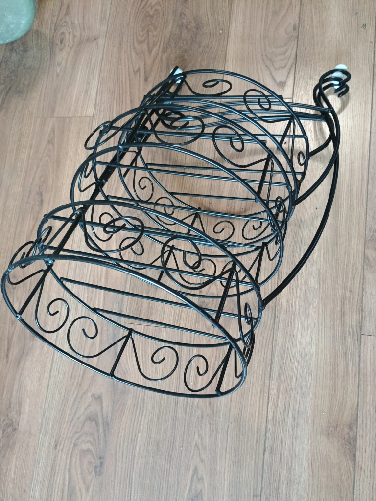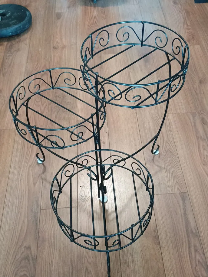 Selling an elegant black metal three-tier, adjustable plant stand. It's perfect for displaying your favourite plants and adding a touch of elegance to your space. It's in great condition and ready for a new home!