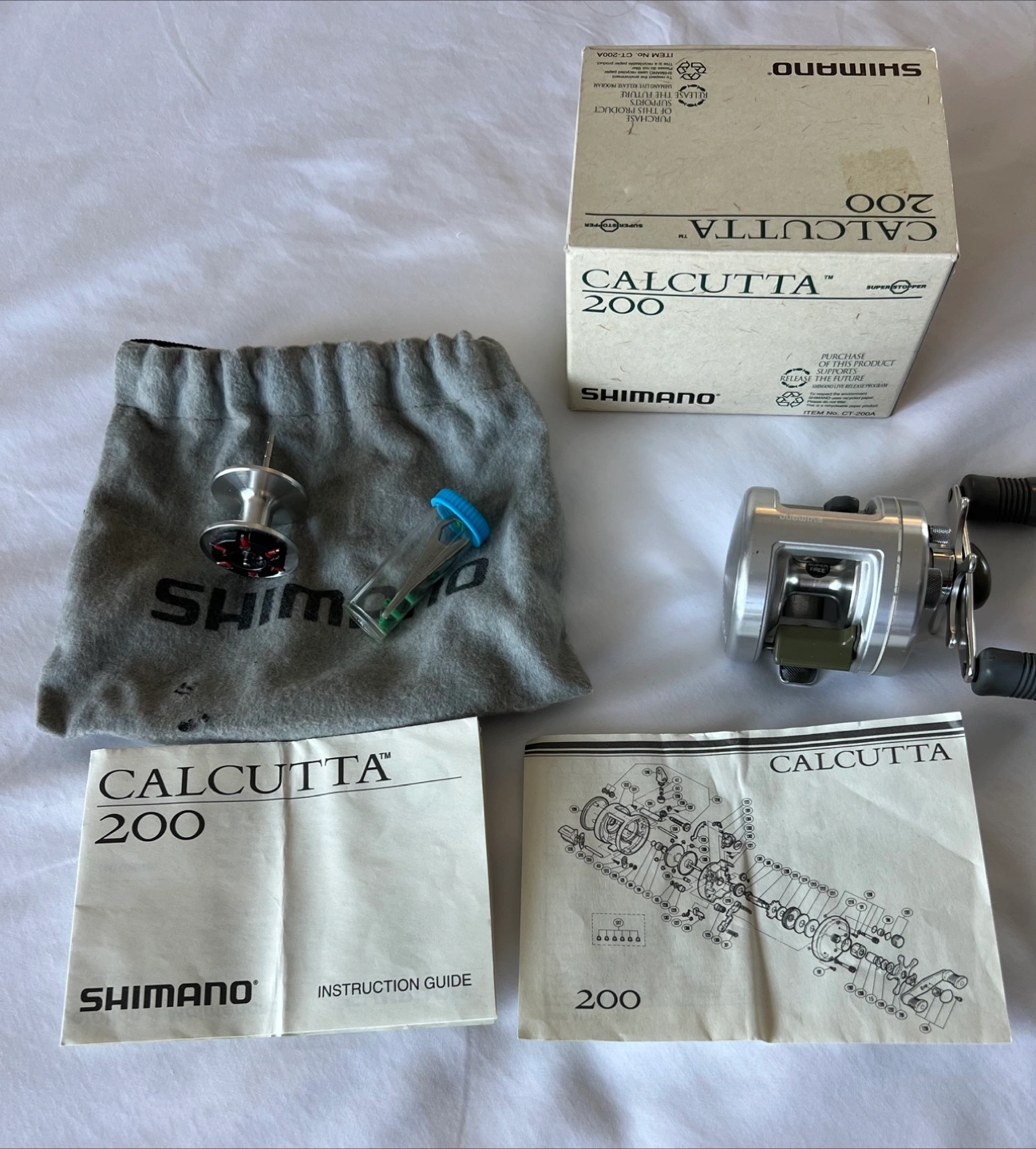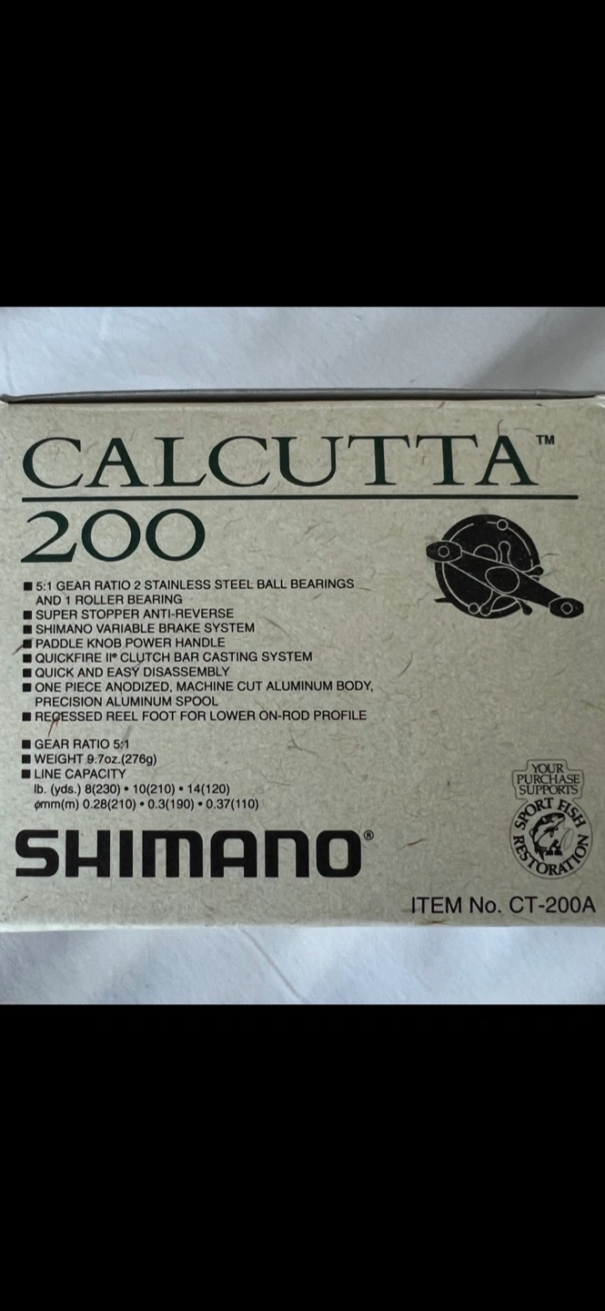 Selling a Shimano Calcutta 200 bait casting reel! It comes with the original box, instruction guide, and some accessories. This reel features: