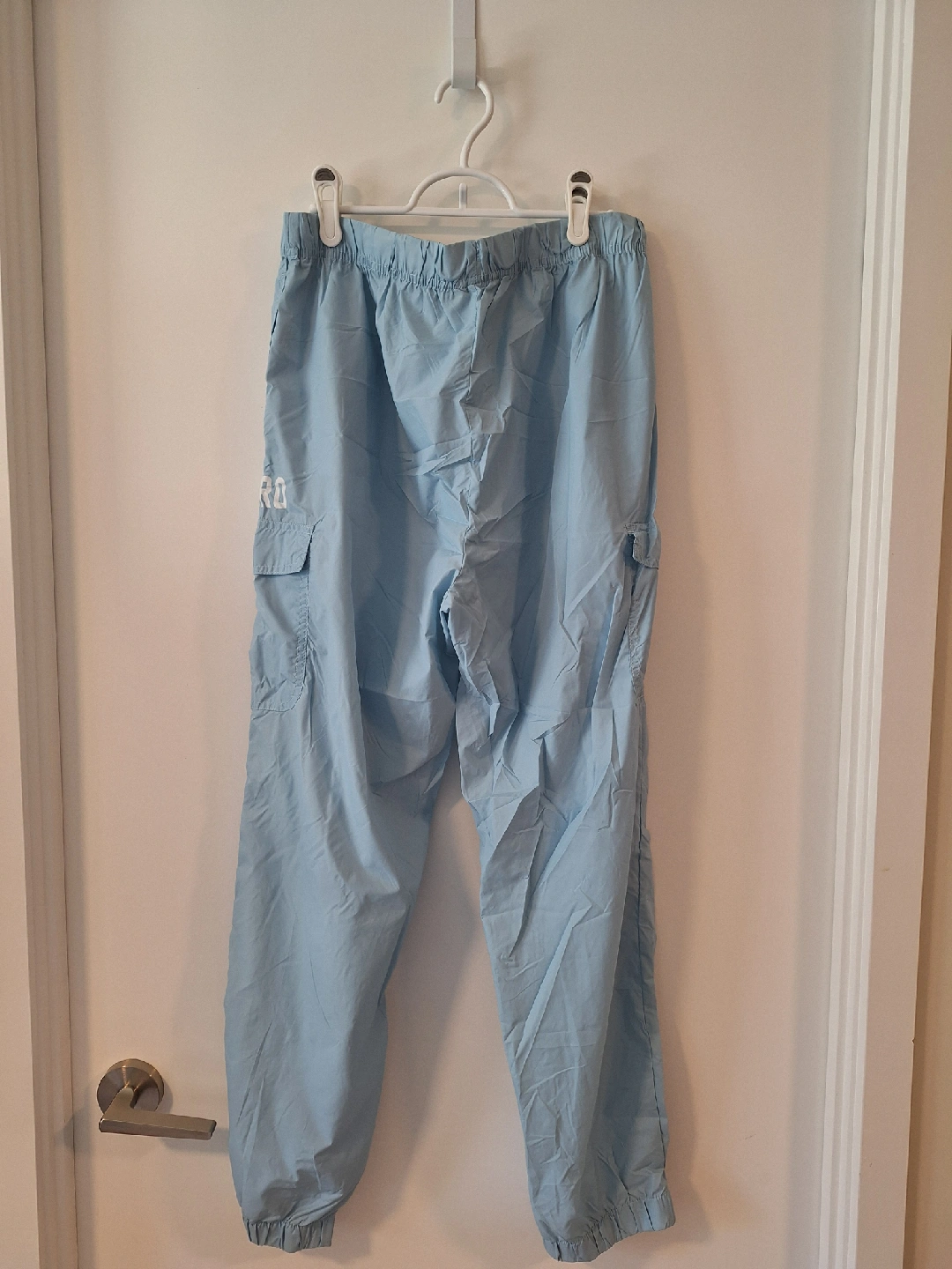 Selling a pair of Aeropostale windbreaker pants in a light blue colour! They're a size XL and in great condition. Perfect for a casual look or outdoor adventures (no drawstring).