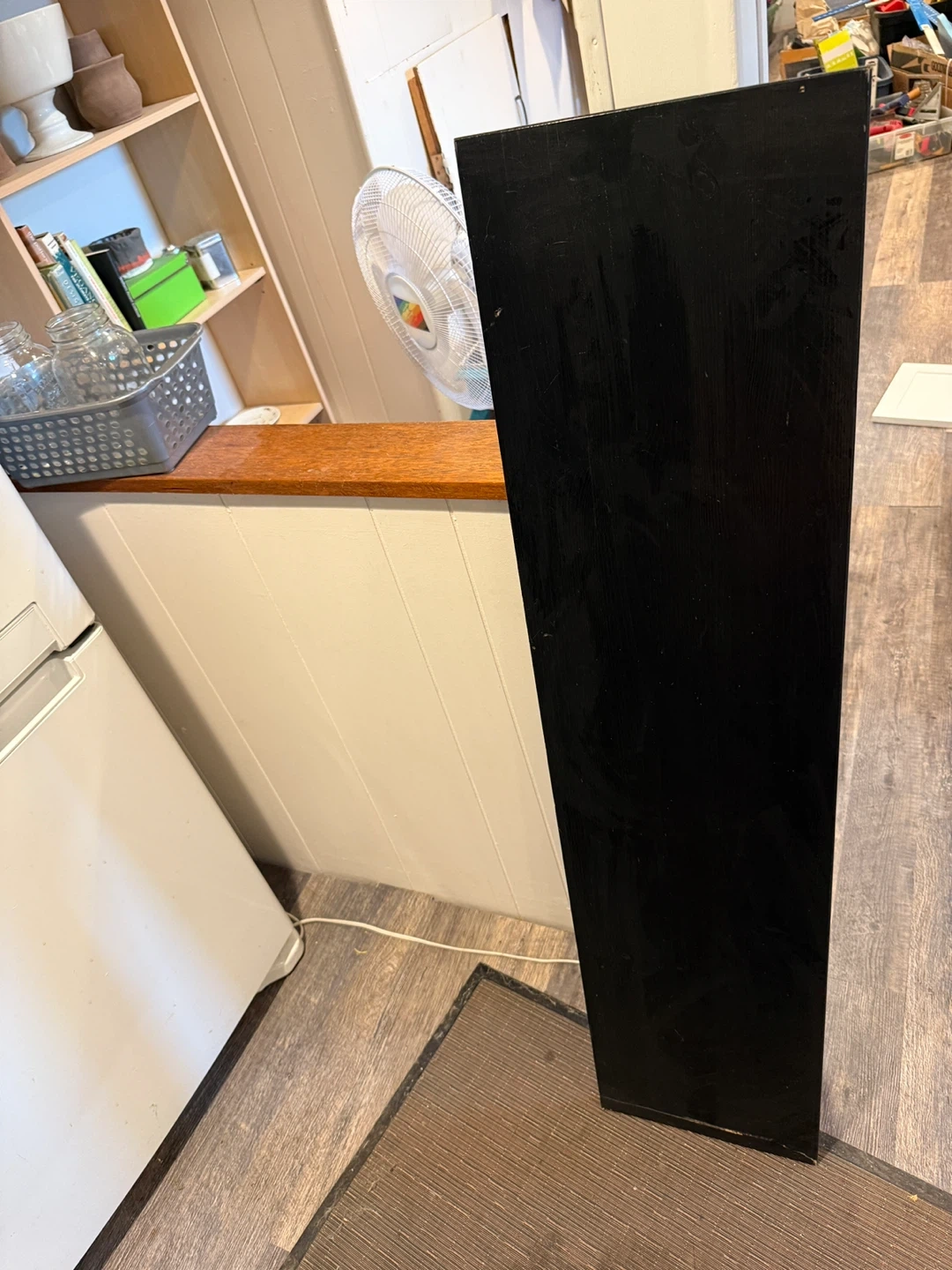 Selling a black shelf. It's in good condition and ready for a new home. Perfect for organizing books, decor, or anything else you need to store!
