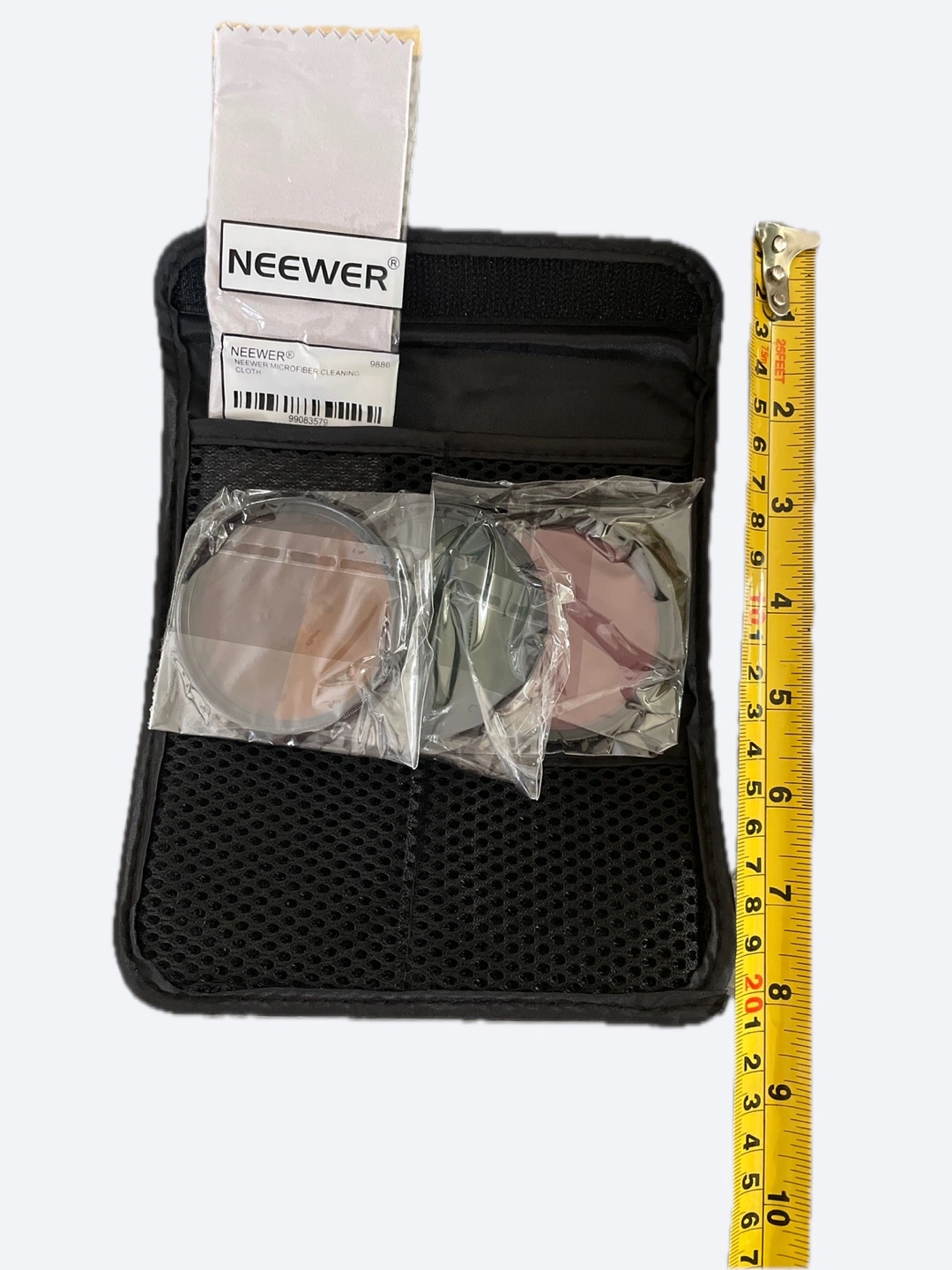 Selling a brand new set of NEEWER 62mm camera lens filters! This set includes brown, green, and pink filters, perfect for adding creative effects to your photography. Also comes with a microfiber cleaning cloth and a handy carrying case to keep everything organized and protected