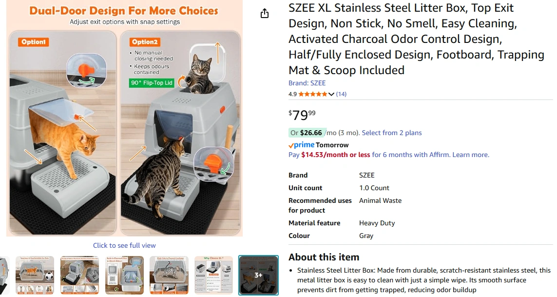 Stainless steel is a great litter box option as it holds less bacteria/smell, and is a lot easier to get properly clean. Plus it lasts a very long time.