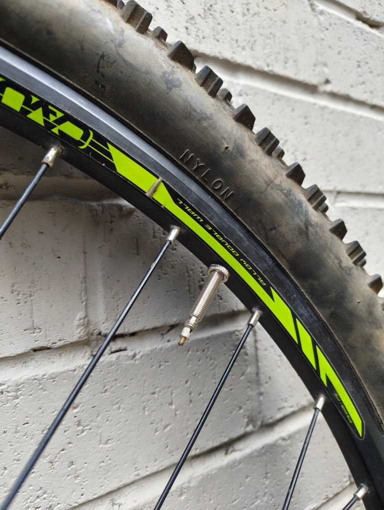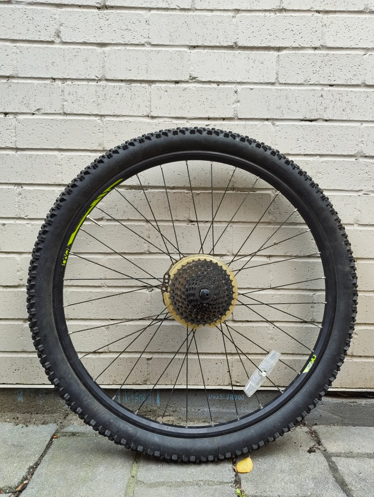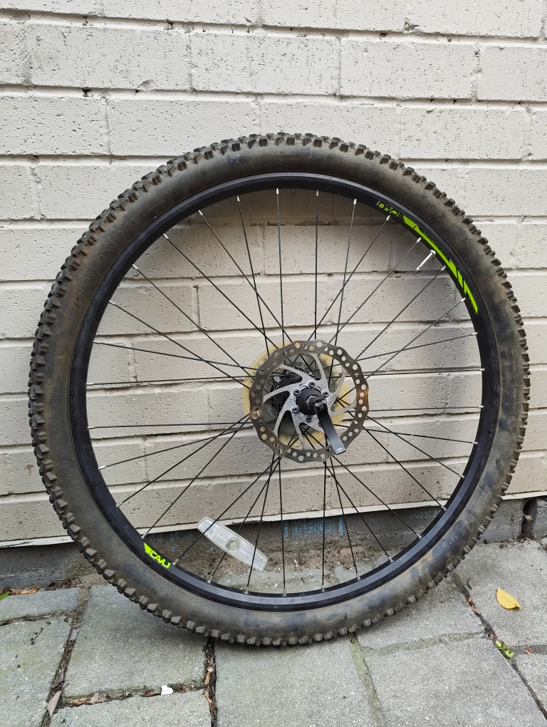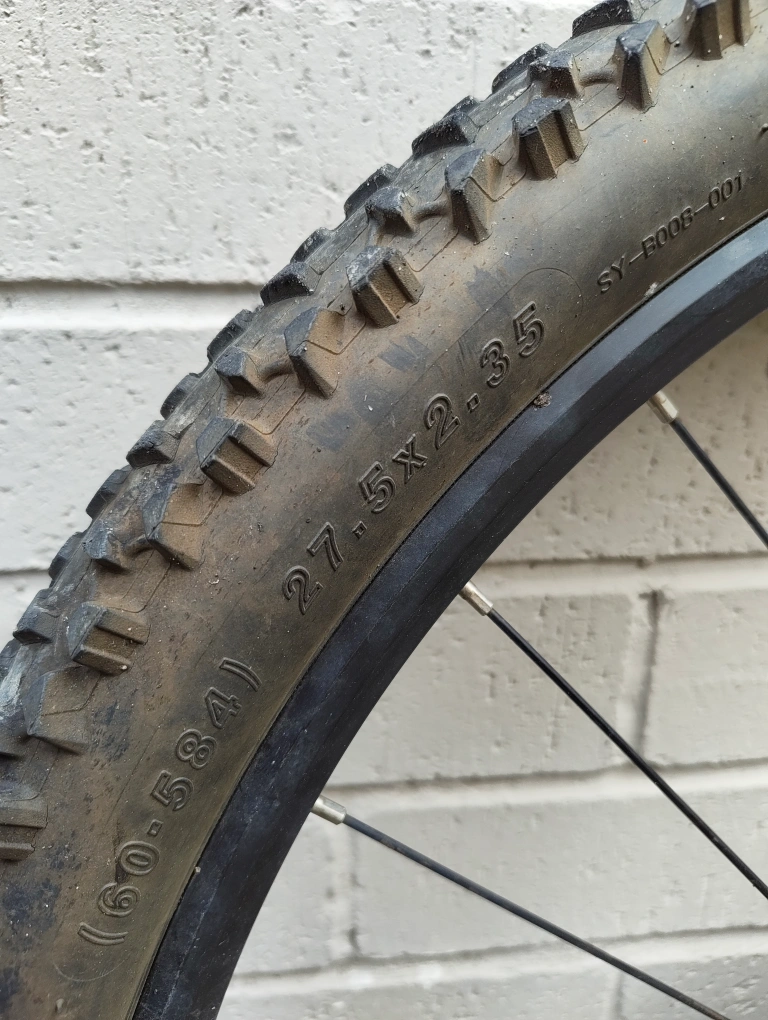 1000+Selling a mountain bike wheel. The tire size is 27.5x2.35. It's in good condition and ready to roll!