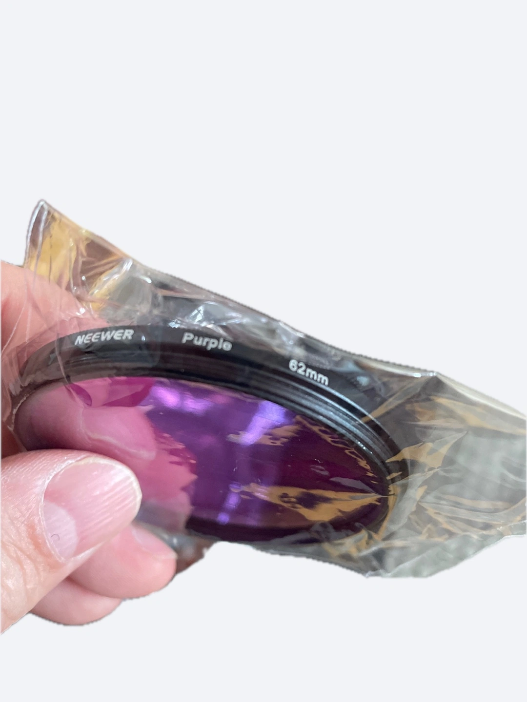 Selling a Neewer 62mm camera lens filter set. The set includes multiple filters in different colours such as yellow, grey, blue and purple. Comes with a carrying case to keep everything organized and protected